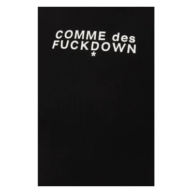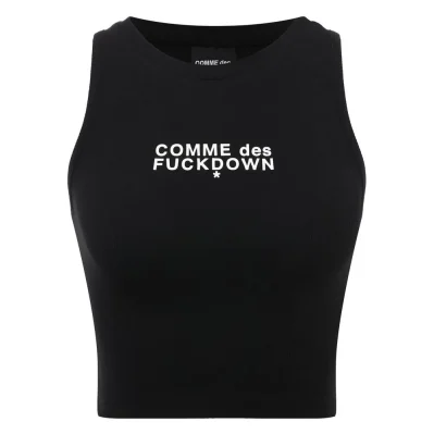 Comme des Fuckdown black cotton ribbed cropped top with rubber logo print