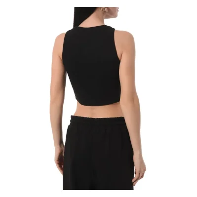 Comme des Fuckdown black cotton ribbed cropped top with rubber... Read More