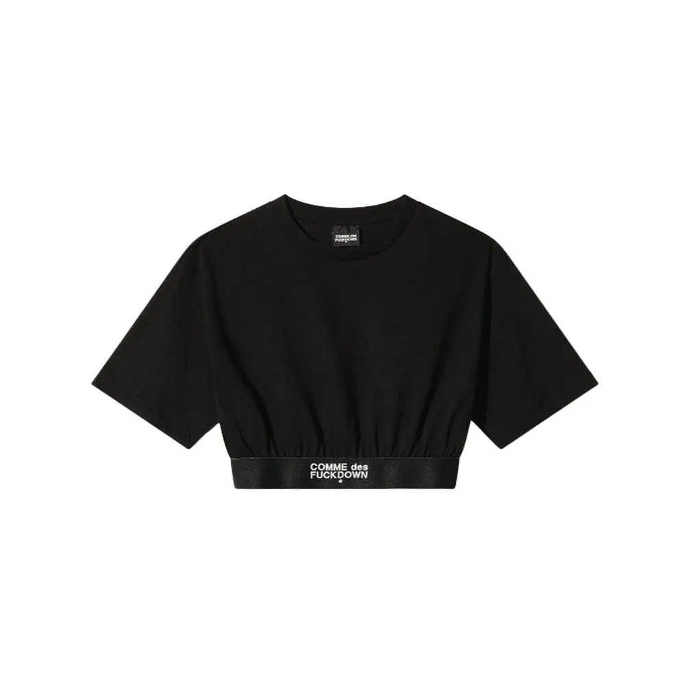 Unleash the audacious spirit of streetwear with ‘Comme Des Fuckdown’, where bold logos and edgy fashion collide. This striking black tee epitomizes the brand’s untamed aesthetic, featuring the iconic logo on a stretchable elastic band that commands attention. Crafted with finesse in Italy, the premium cotton material ensures comfort without compromising on style. Perfect for those who dare to defy and stand out.