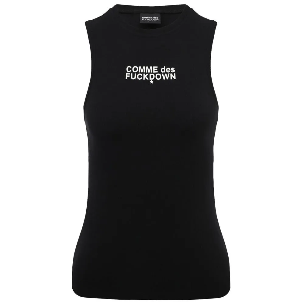Comme des Fuckdown black cotton rib tank top with rubber logo print
