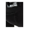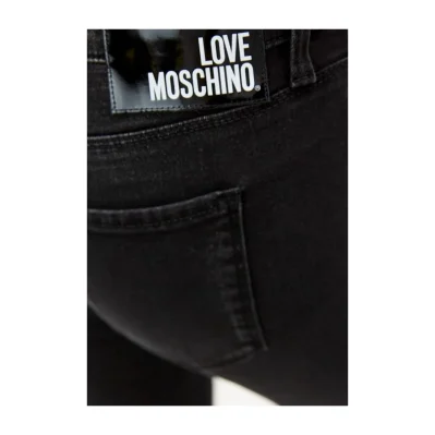 Step into the chic embodiment of contemporary elegance with Love Moschino’s black stretch jeans. Crafted for the fashion-forward, these jeans boast a slimline silhouette that hugs the leg, complemented by a medium-high waist for an impeccable fit. The subtle play of shades with a lighter contrast turn-up at the bottom adds a touch of sophistication. Completed with a glossy black patent leather label featuring the iconic Love Moschino logo in contrasting white.