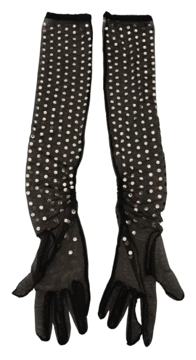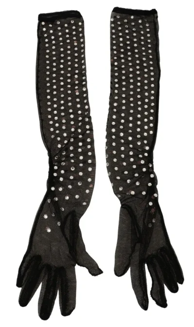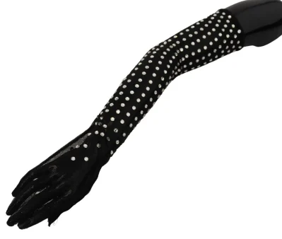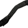 Black Crystal Elbow Length Cotton Tulle Gloves