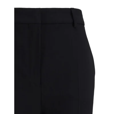 The Flared Fitted Trousers by Sportmax are crafted from stretch wool twill and feature a sculpted fit that gently widens at the hem, creating an elongated, balanced silhouette. The low-rise waist and masculine tailoring details lend character and structure, while pressed creases and welt pockets highlight the precision of the cut. An essential and contemporary piece that reinterprets the brand’s formal language with a refined, modern sense of femininity.