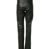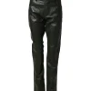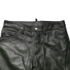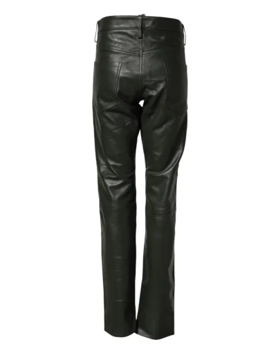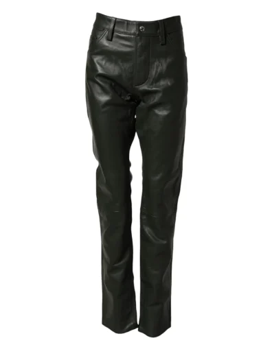 black leather pants. Crafted from premium full-grain leather, they offer a luxurious texture and durable structure. The mid-waist fit and sleek silhouette give them a modern edge, perfect for elevating evening looks or adding a touch of rock-chic style to everyday outfits. Ideal for fashion-forward wardrobes seeking standout sophistication.