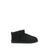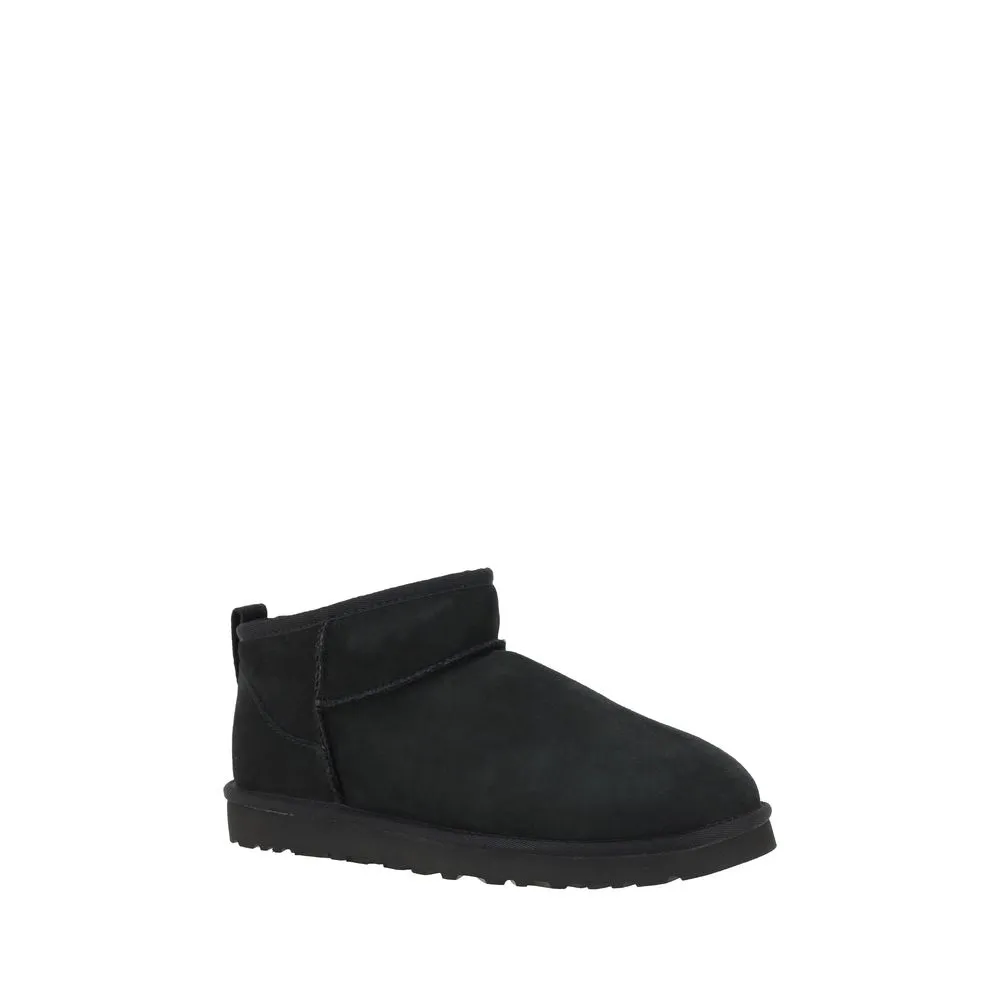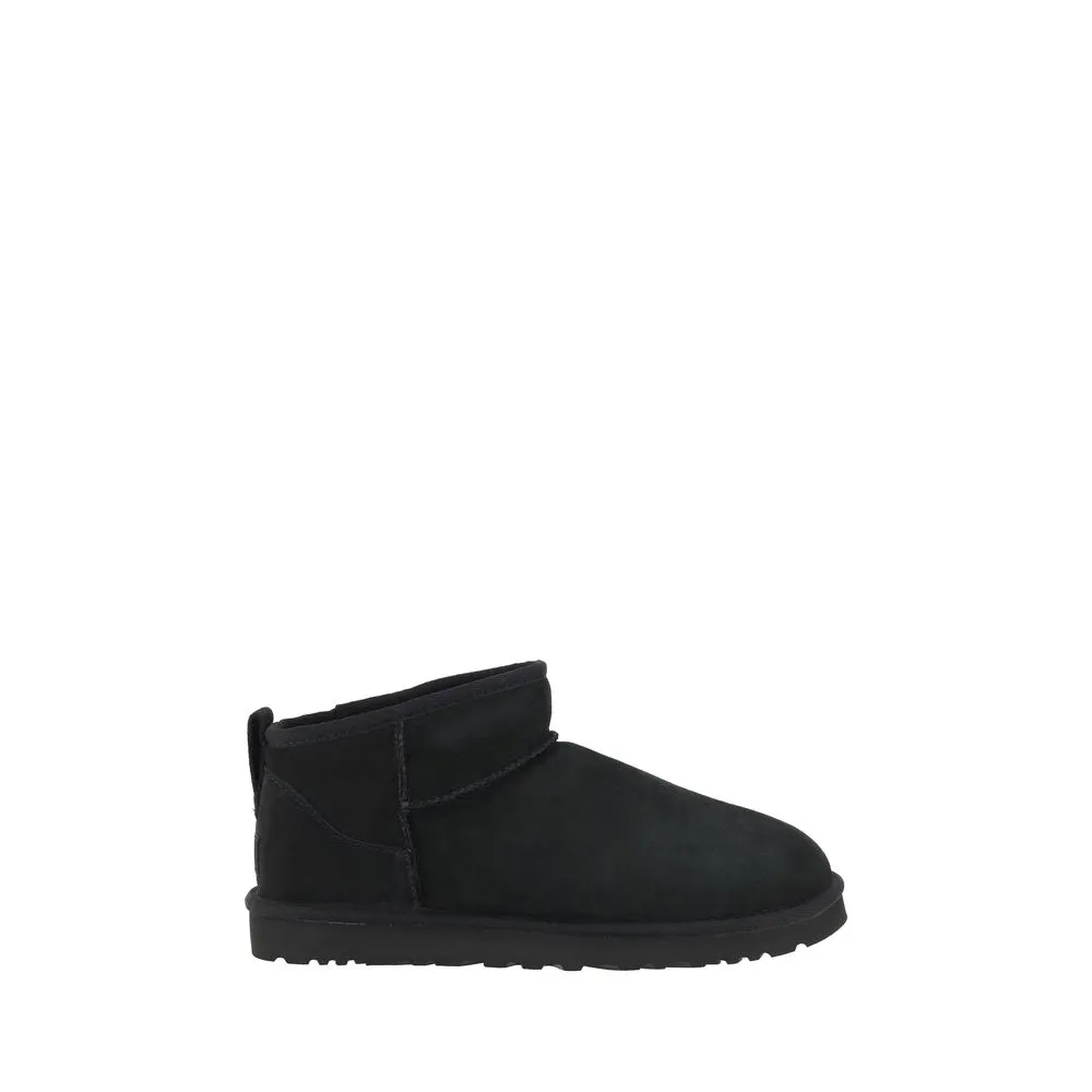 Ultra mini leather Ankle Boots by Ugg feature a knurled sole for grip and durability. The round toe provides optimal comfort, while the soft shearling lining ensures warmth and comfort. The brand’s iconic monogram is applied on the heel, adding a distinctive touch. Embossed stitching and a suede design complete the aesthetic, making these boots a perfect blend of style and functionality for winter.