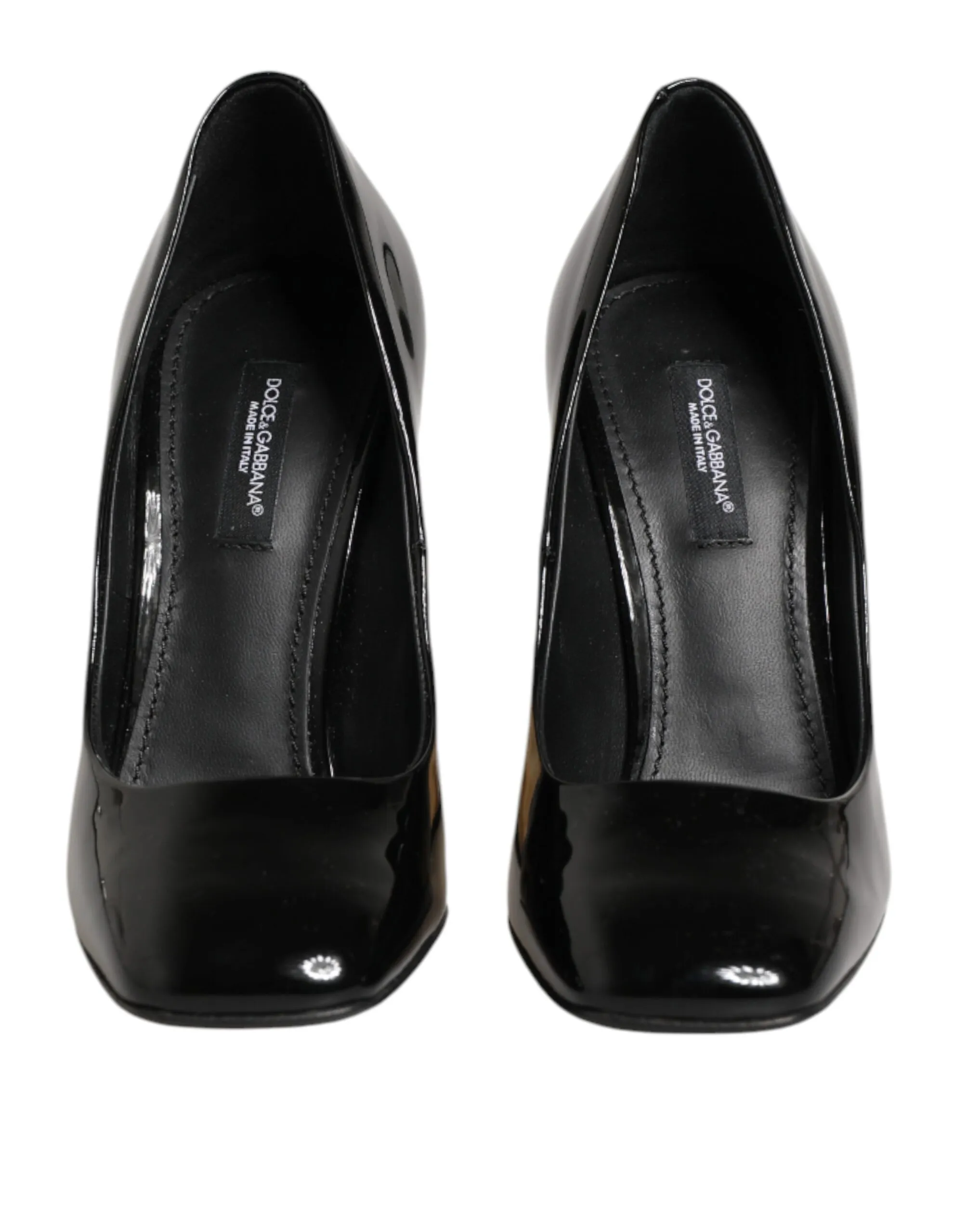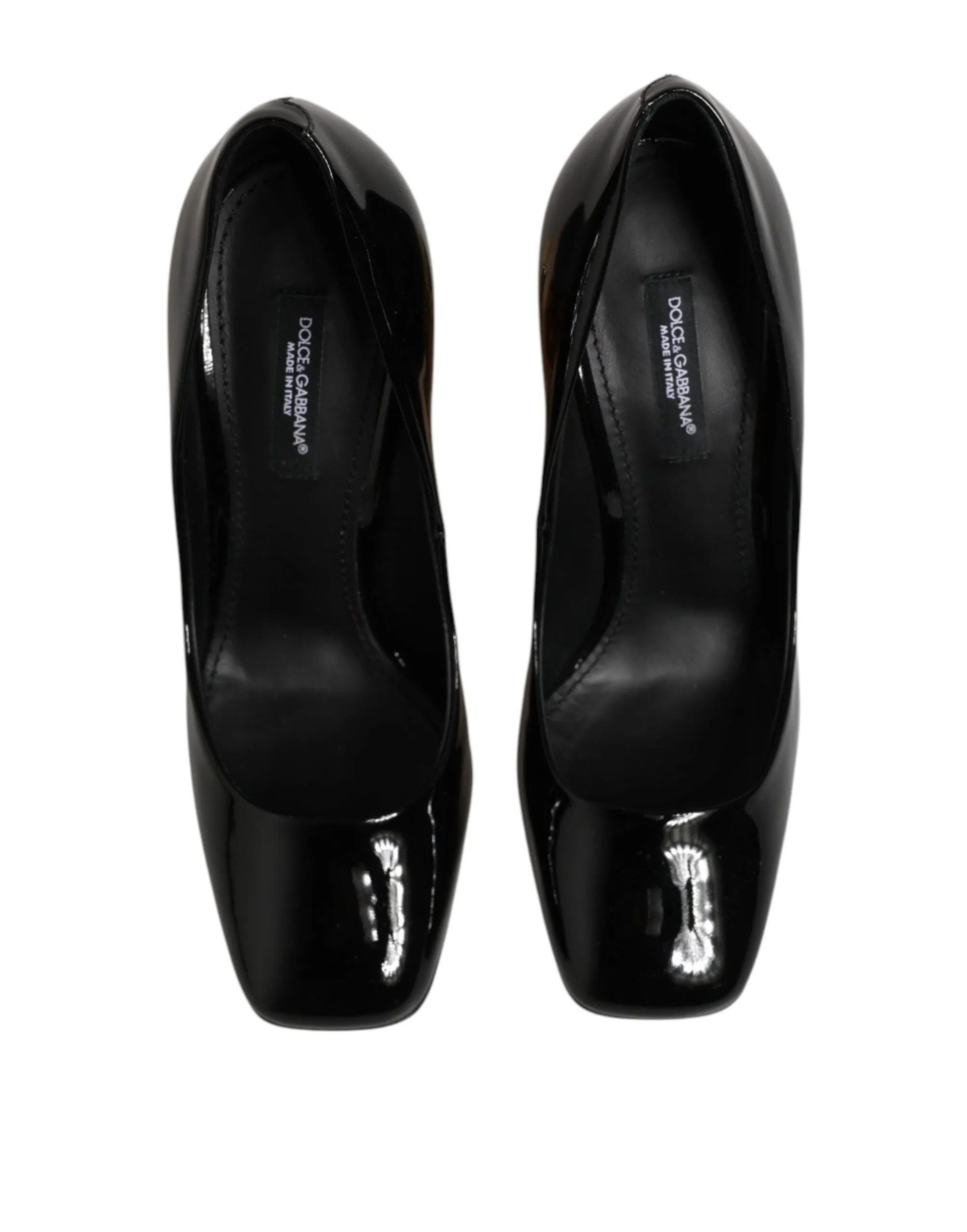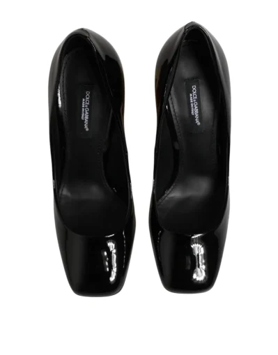 pumps radiate luxury and sophistication with their striking black and gold patent leather design. Crafted in Italy, they feature a sleek pointed toe and a bold gold-toned heel adorned with the iconic DG logo, adding a statement touch of glamour. The glossy patent finish enhances their elegant silhouette, making them perfect for evening wear or upscale occasions. A true reflection of Dolce & Gabbana’s opulent craftsmanship and timeless Italian style.