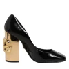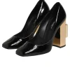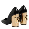 Black Gold Patent Leather Logo Heels Pumps Shoes