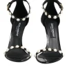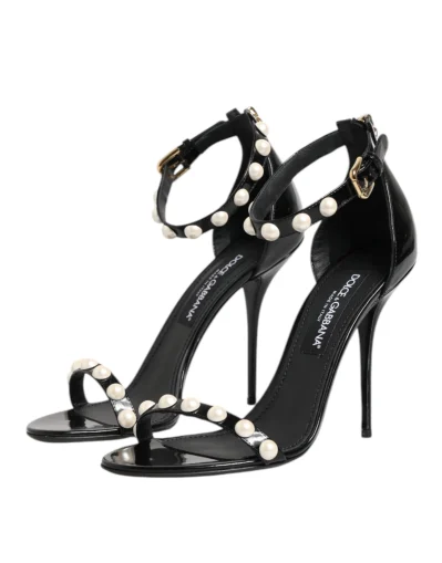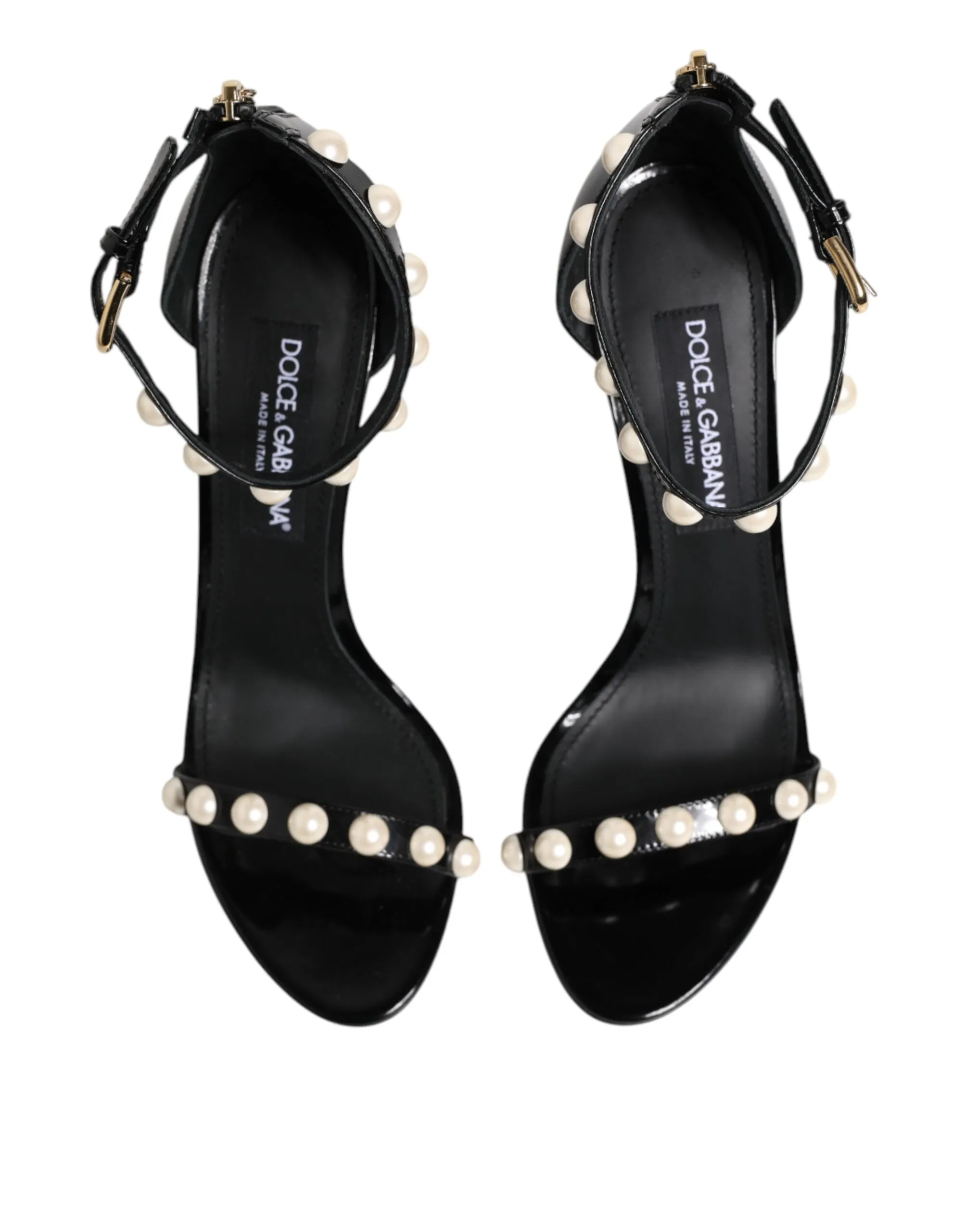 Gorgeous brand new, 100% Authentic DOLCE & GABBANA sandals come crafted from black patent leather and are designed with pretty pearls embellished open toes and zipper closures.