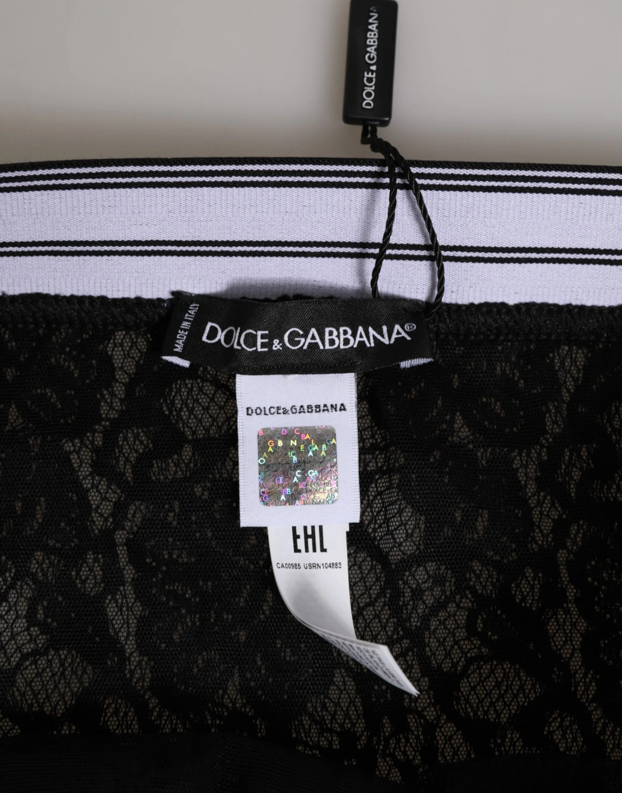 Gorgeous brand new, 100% Authentic Dolce & Gabbana black lace slip briefs featuring a soft logo waistband. Elegant sheer design with a comfortable, flattering fit. Made in Italy.