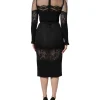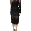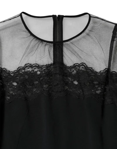 Gorgeous brand new, 100% Authentic Dolce & Gabbana black midi dress is crafted from delicate nylon tulle in a flattering sheath silhouette. Detailed with intricate lace trim, it blends elegance with a touch of sensuality. A refined choice for evening events and special occasions, showcasing the brand’s signature Italian glamour.