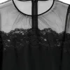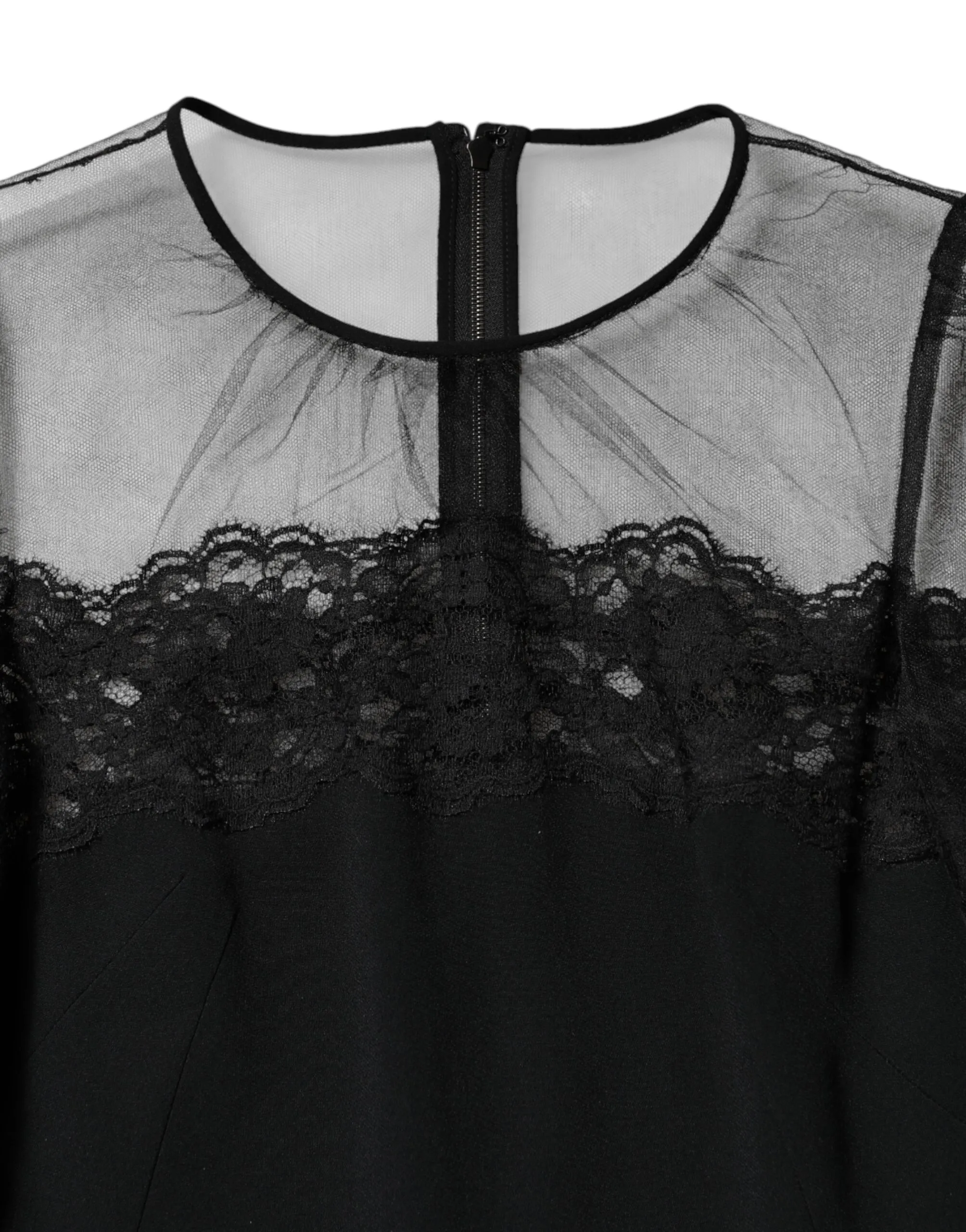 Black Lace Trim Nylon Tulle SheathMidi Dress