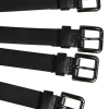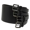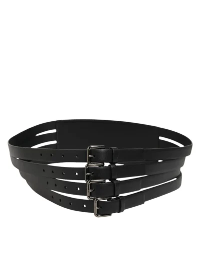 Black Leather 4-Strap Metal Multi-Buckle Belt