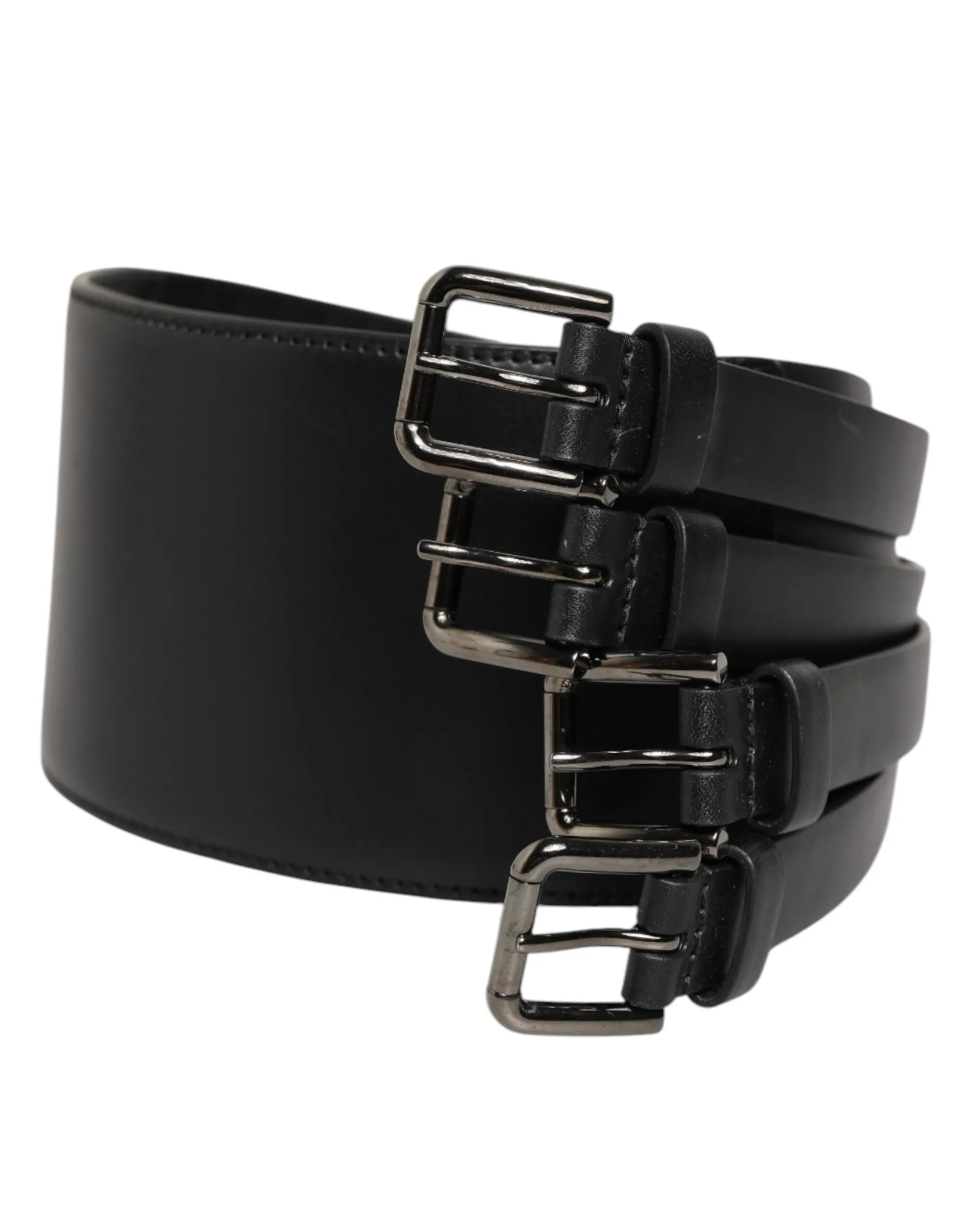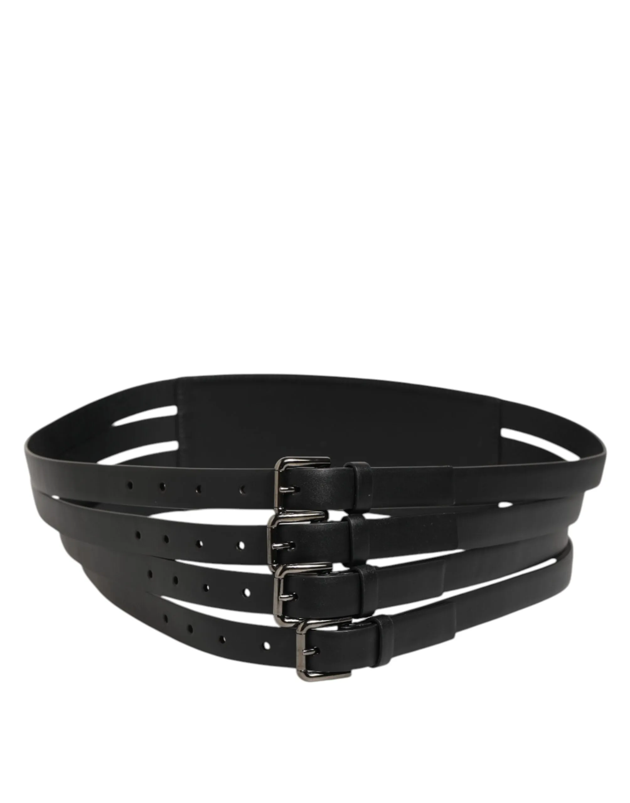 Gorgeous brand new, 100% Authentic Dolce & Gabbana Turn heads with this striking 4-strap black leather belt. Designed with four sleek adjustable straps and silver-tone buckles, this belt combines edgy style with high-fashion appeal. Ideal for layering over dresses, coats, or tops, it adds structure and a bold statement to any outfit.