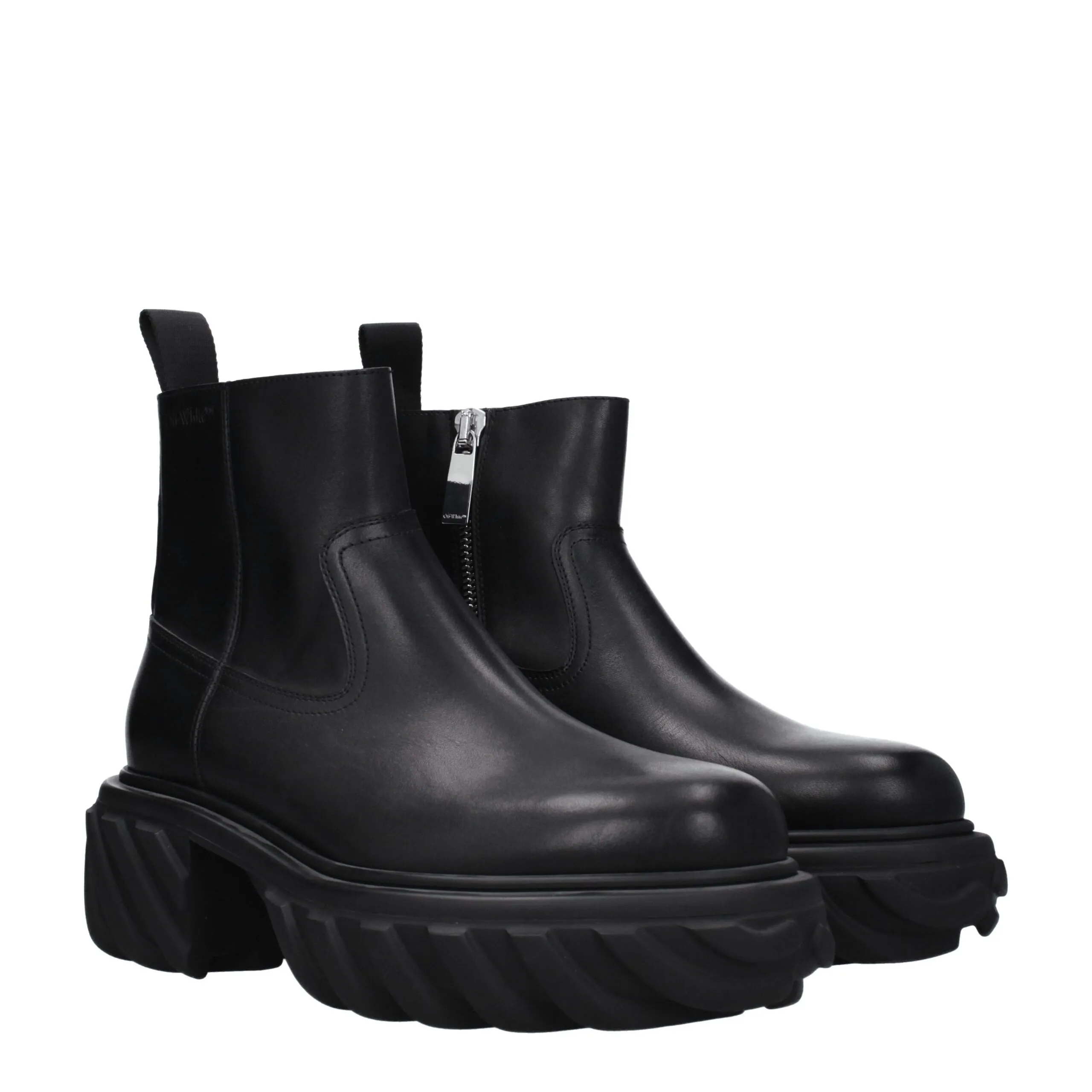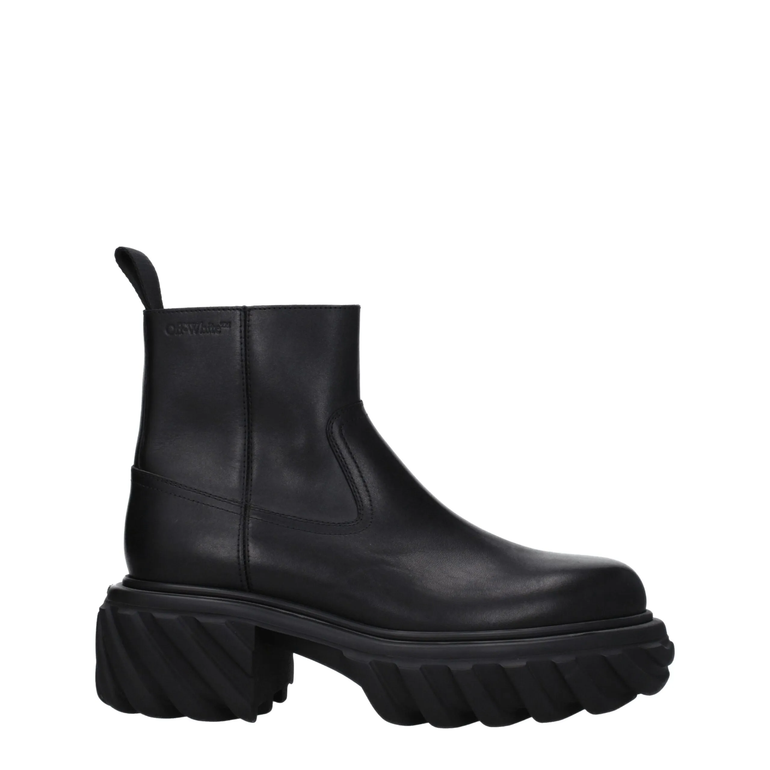 The product with MPN OMID029LEA0011010 and code F79083 leather in black is a ankle boots designed by Off-White. It has features like side logo.