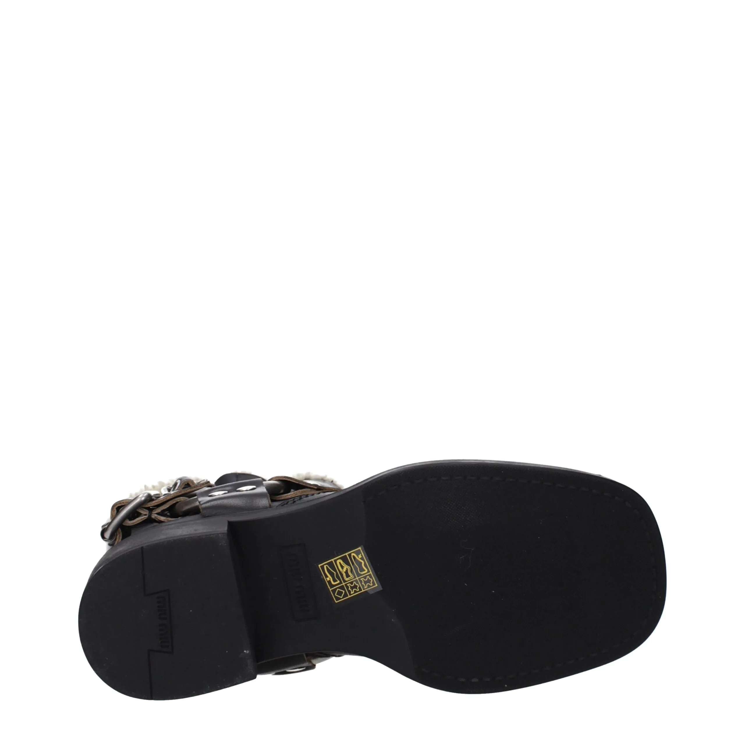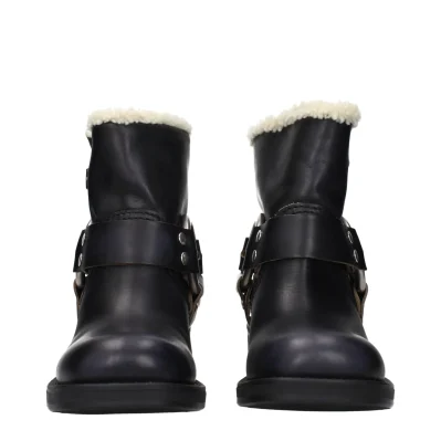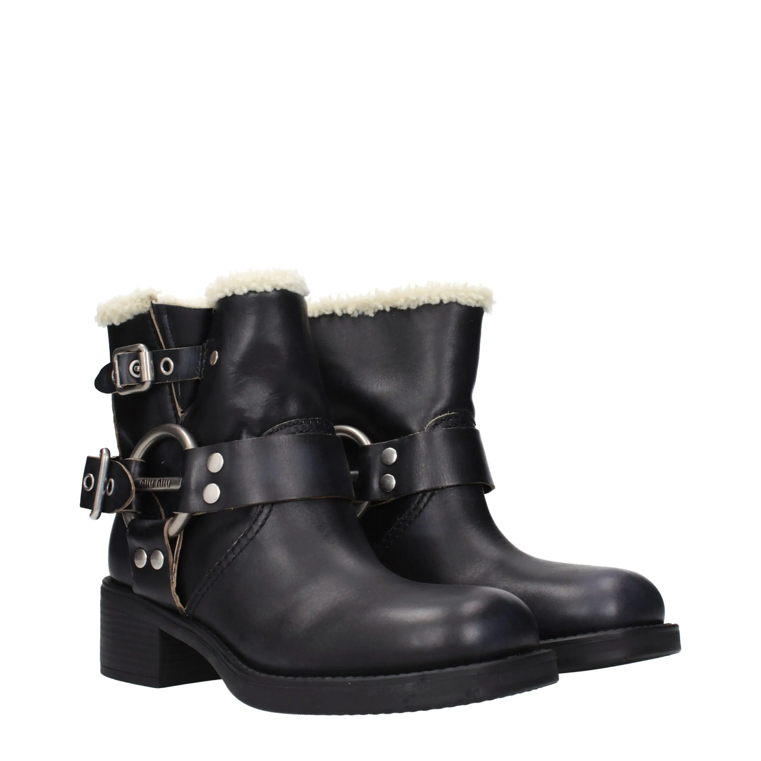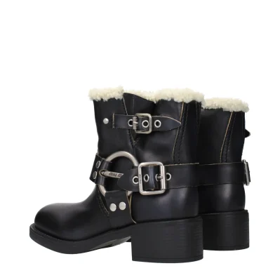 The product with MPN 5T953D3LNCD050F0002 and code F85399 leather in black is a ankle boots designed by Miu Miu. It has features like side logo, fur inside, vintage effect.