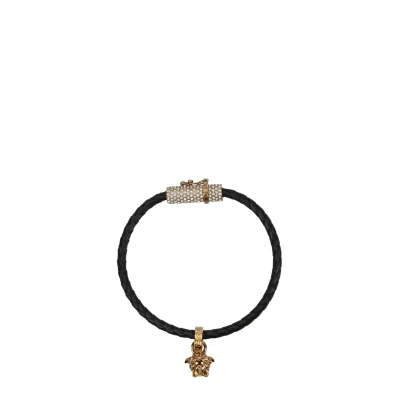 The product with MPN 10092161A051691B130 and code F77891 leather in black is a bracelets designed by Versace. It has features like front detail, back logo.