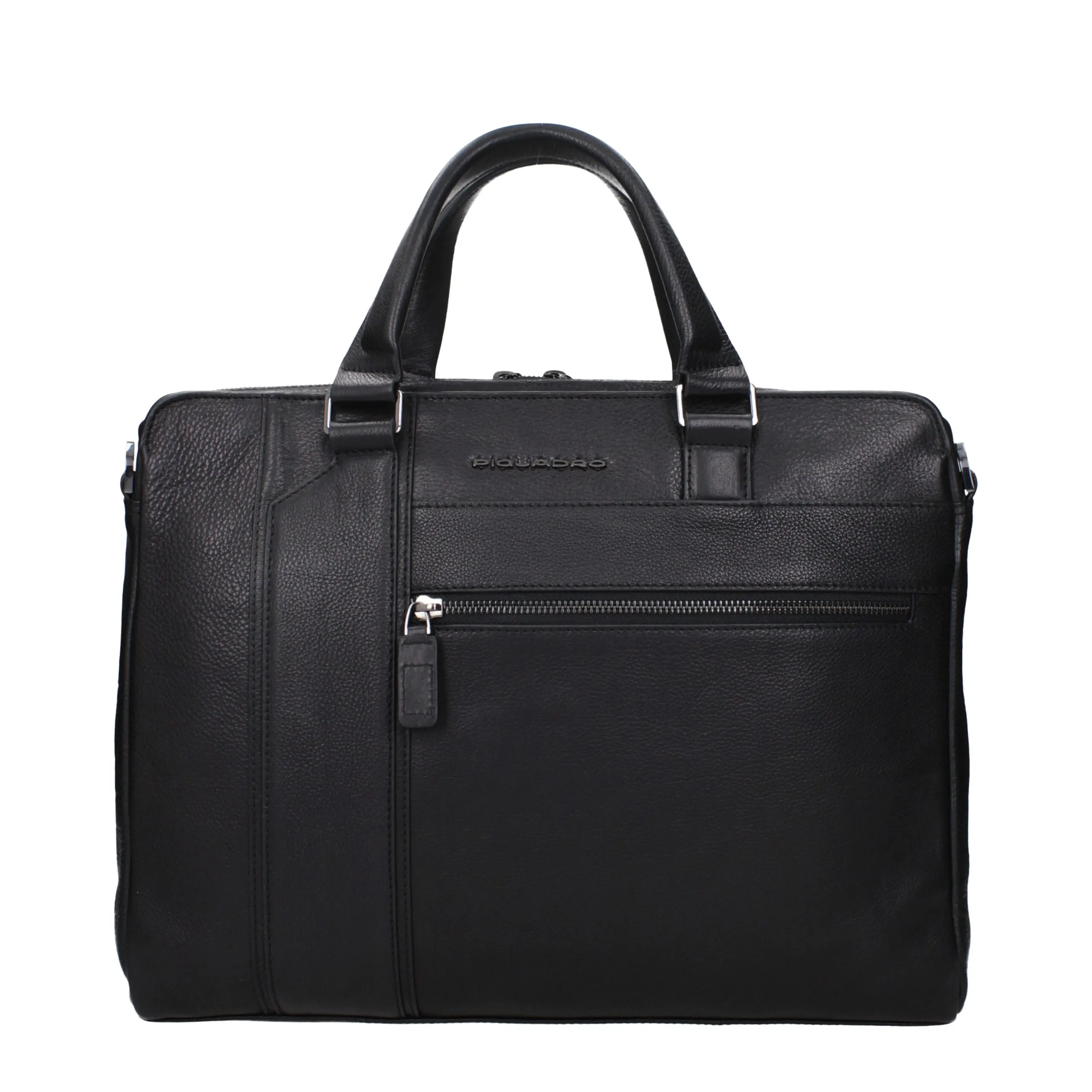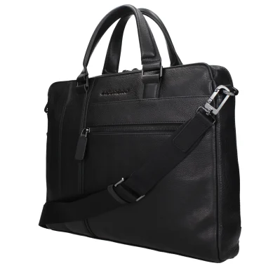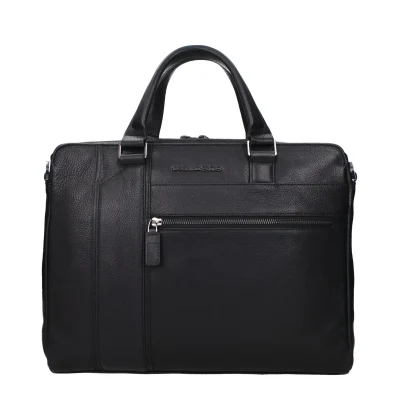 The product with MPN CA4940S105N and code F84380 leather in black is a work bags designed by Piquadro. It has features like front logo, back logo, adjustable shoulder, removable shoulder, vintage effect.
