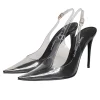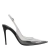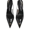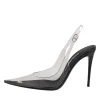 slingback pumps combine modern design with classic elegance. Crafted from smooth black leather with transparent PVC inserts, they create a chic illusion effect while maintaining a refined silhouette. The pointed toe and slim heel enhance the feminine look, while the adjustable slingback strap ensures a secure fit. Perfect for both evening events and sophisticated daywear.