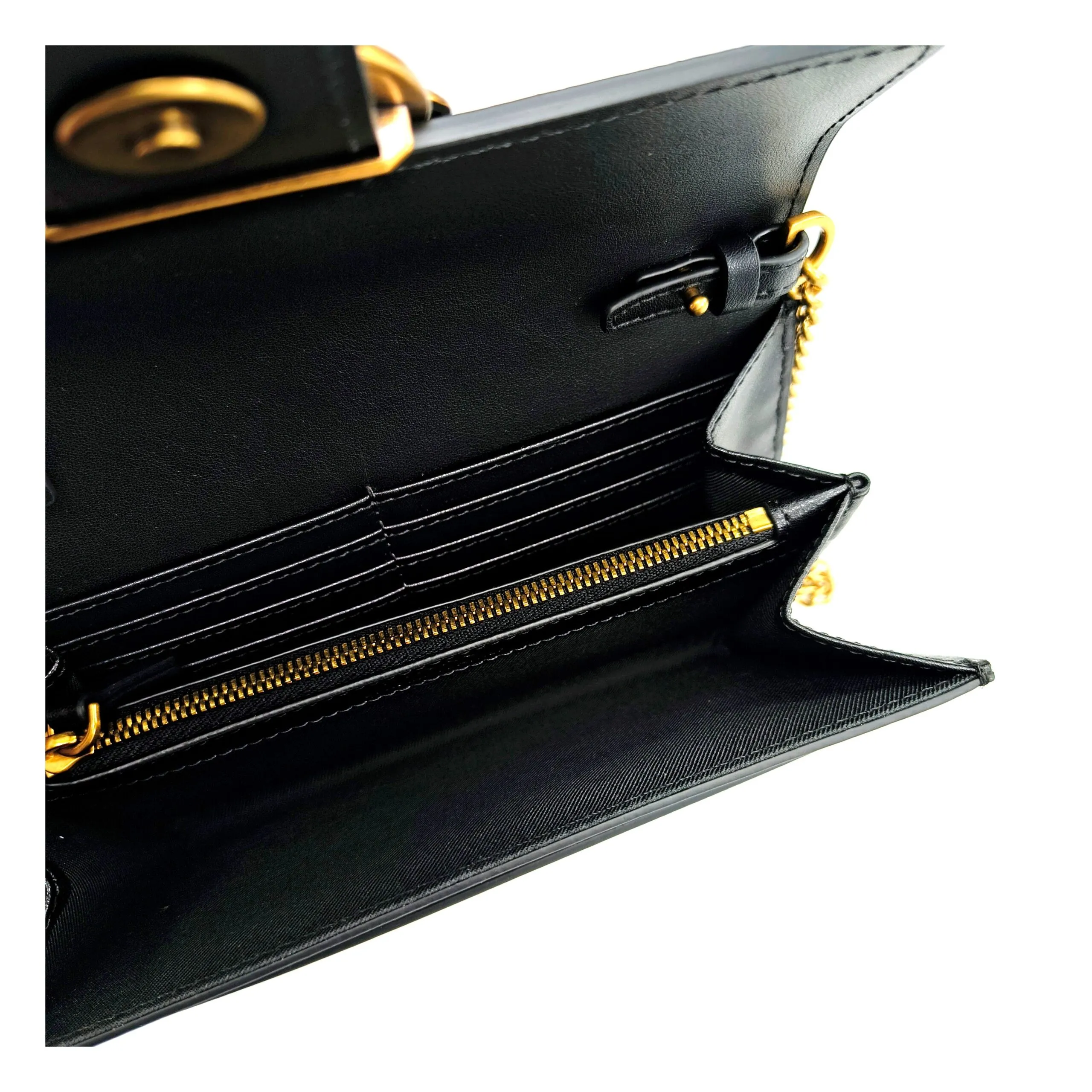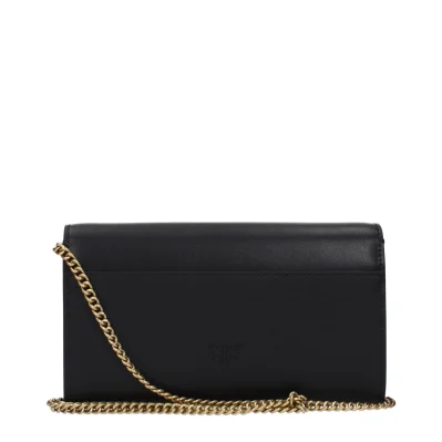 The product with MPN 100062A0F1Z99Q and code F84982 leather in black is a clutches designed by Pinko. It has features like front logo, back logo, divider inner pocket, removable shoulder, vintage effect.