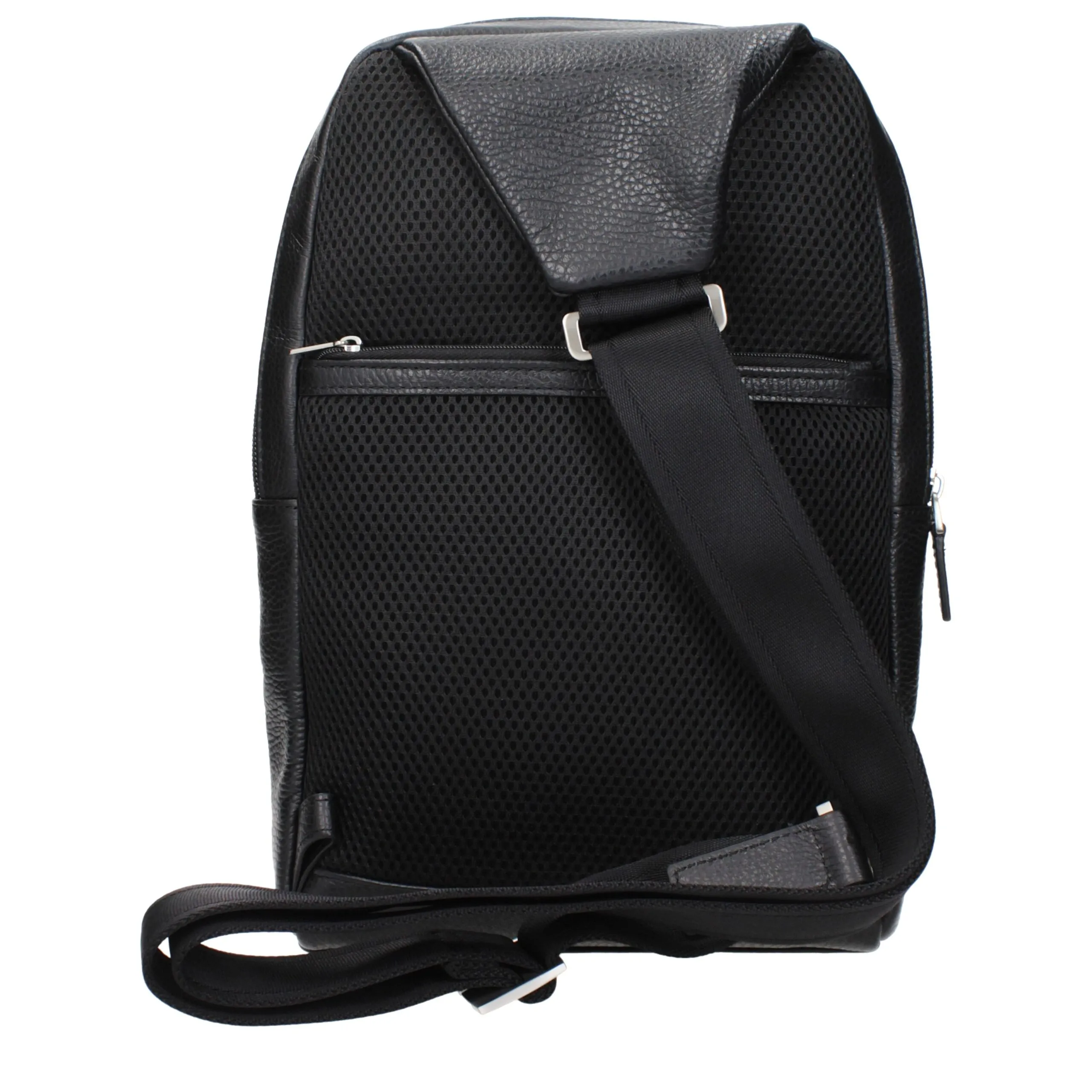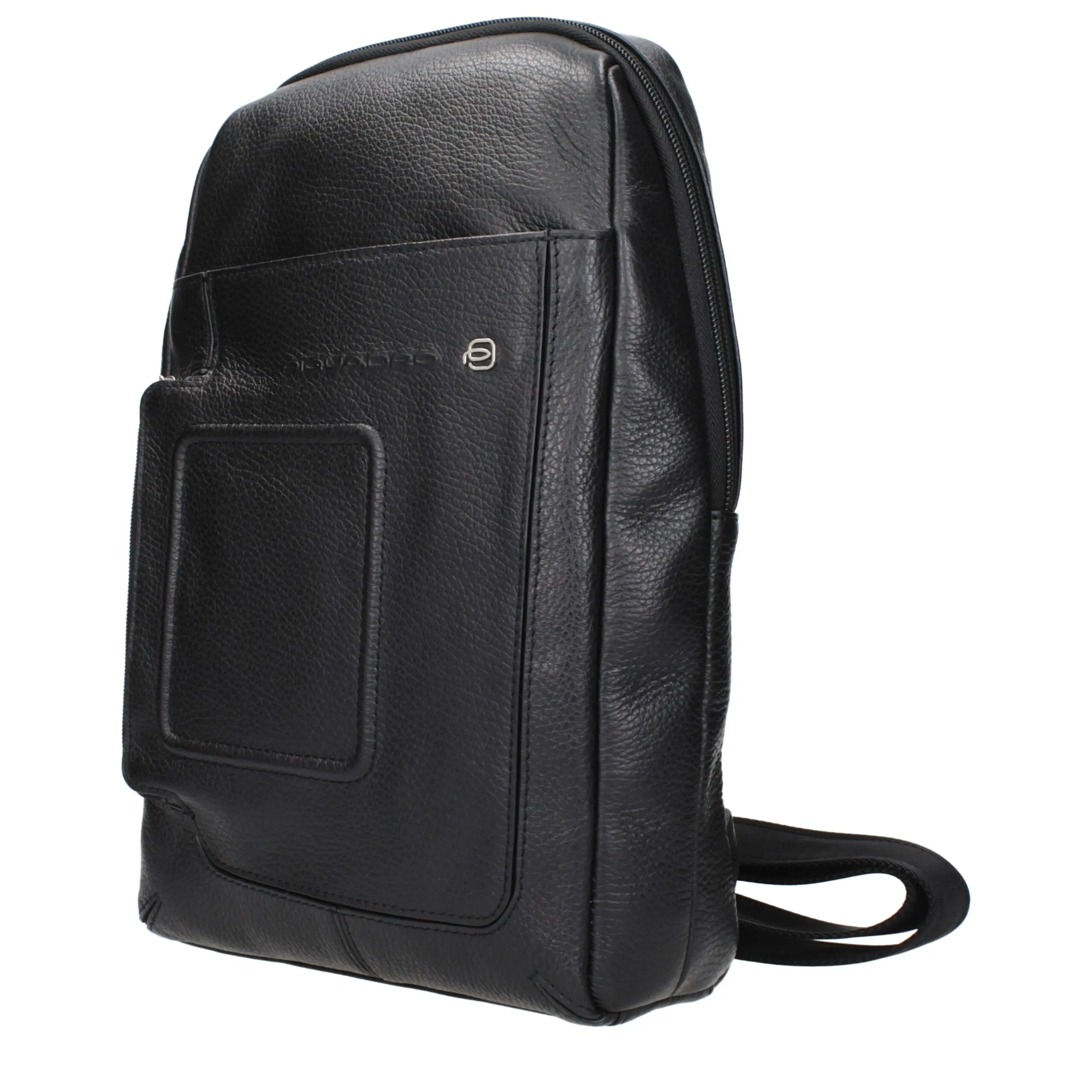 The product with MPN CA4832VIN and code F84382 leather in black is a crossbody bags designed by Piquadro. It has features like front logo, back adjustable straps.