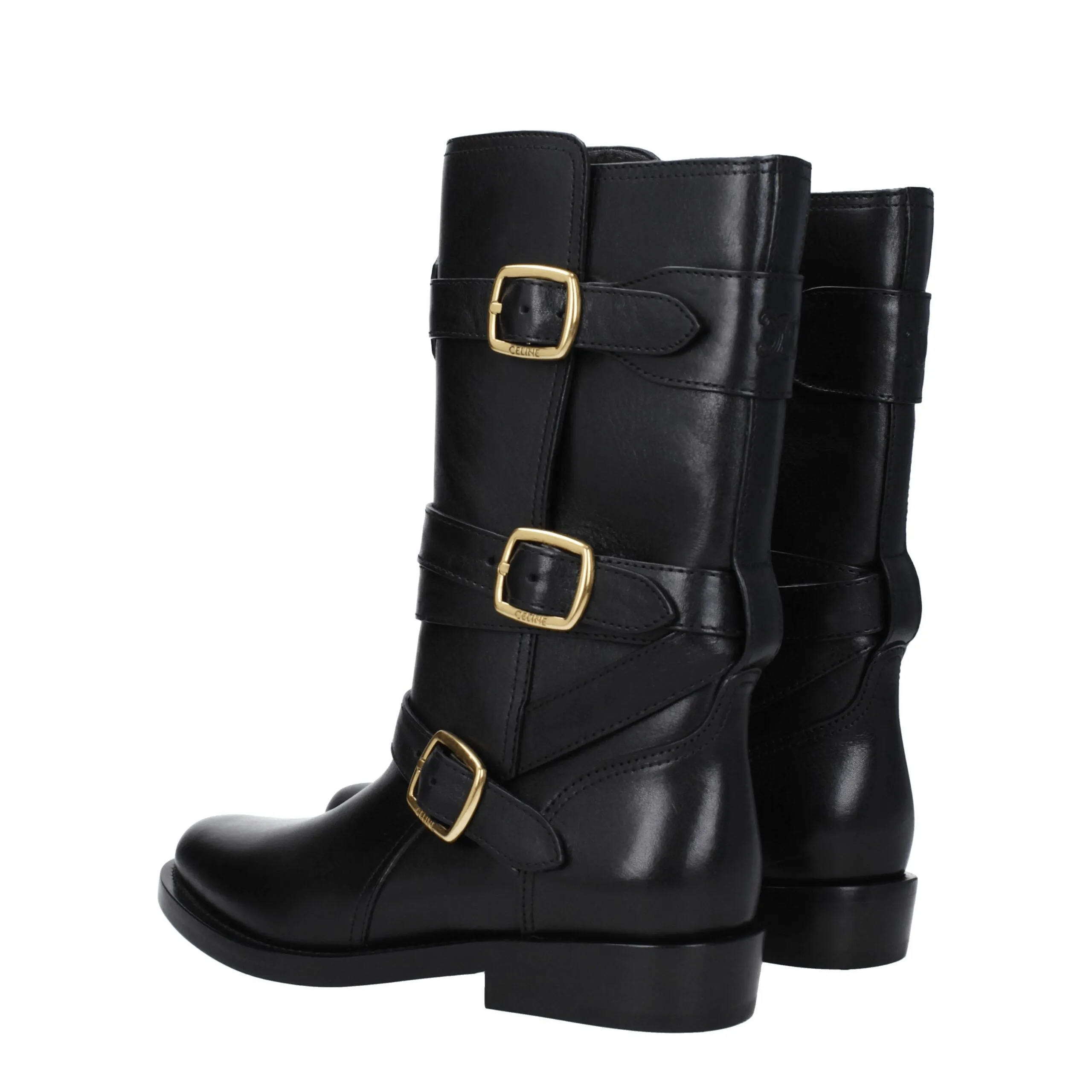 The product with MPN 354983492C38NO and code F78936 leather in black is a boots designed by Celine. It has features like aged effect, vintage effect, side logo.