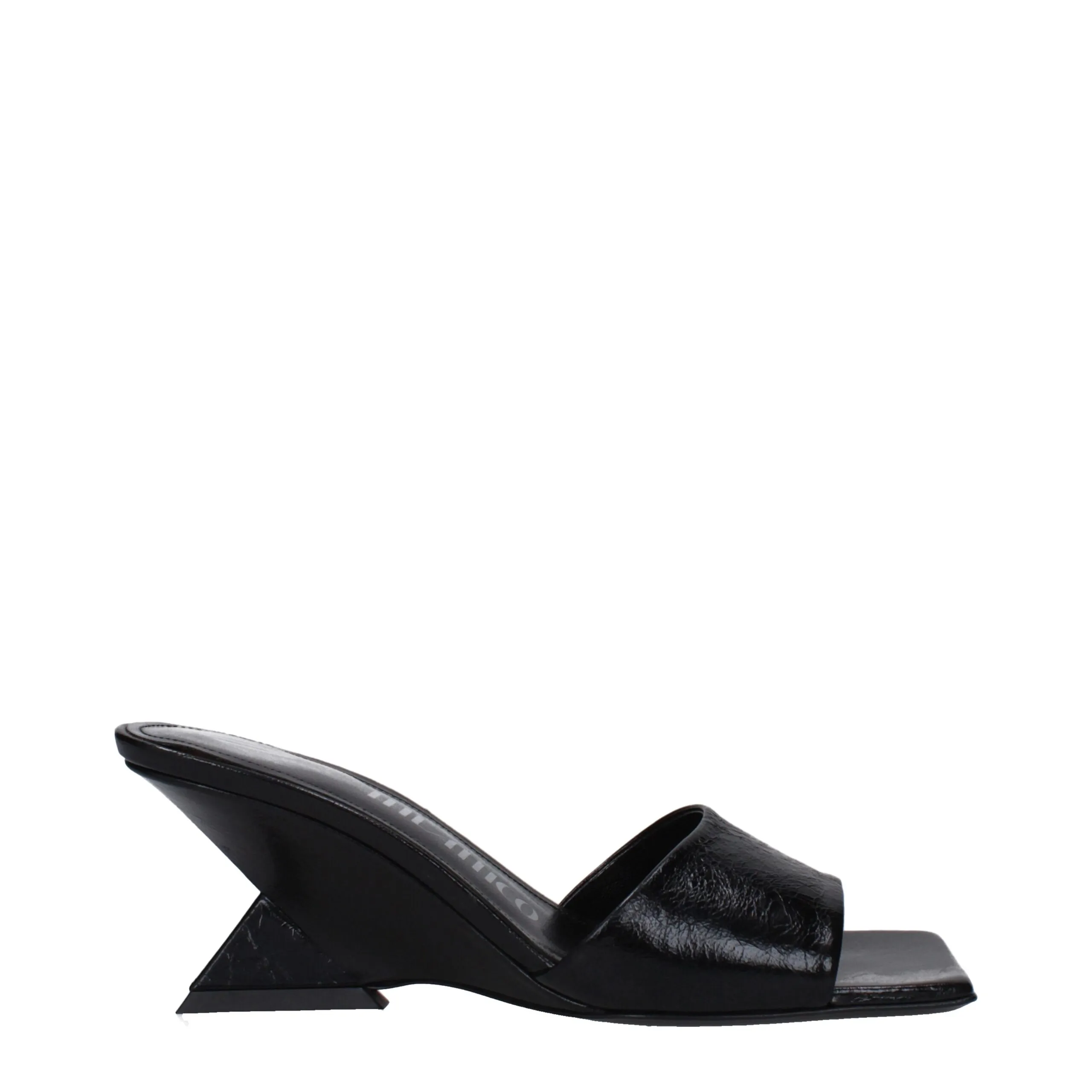 The product with MPN S605L070100 and code F83208 leather in black is a sandals designed by The Attico. It has features like vintage effect, aged effect.
