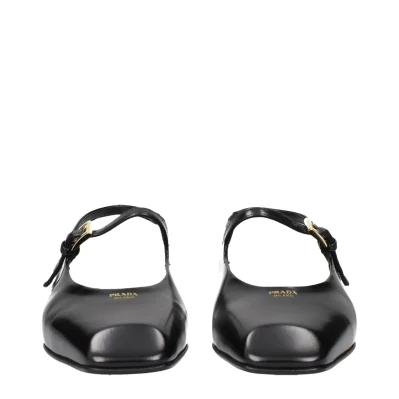 The product with MPN 1F828N055015F0002 and code F84270 leather in black is a sandals designed by Prada. It has features like front logo.