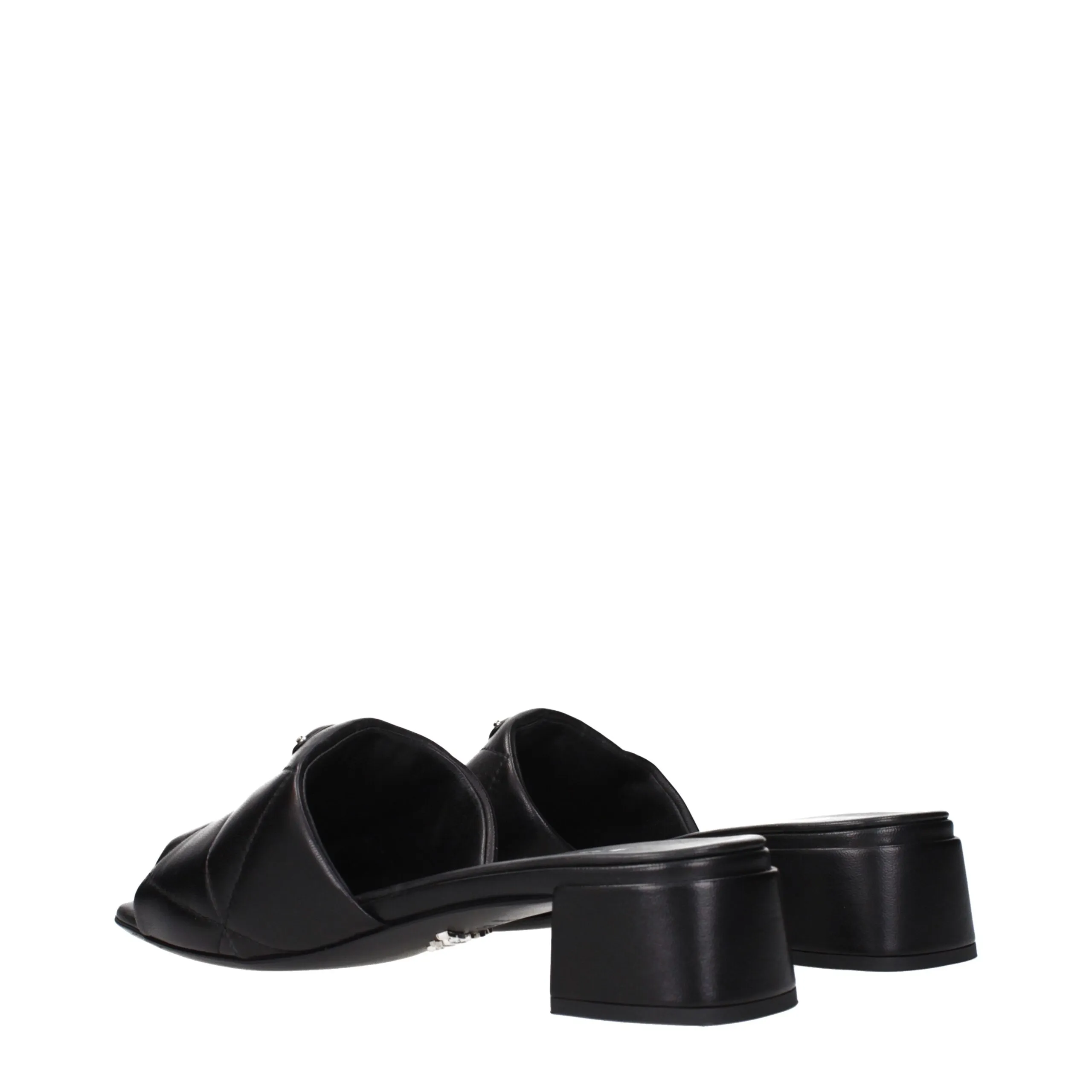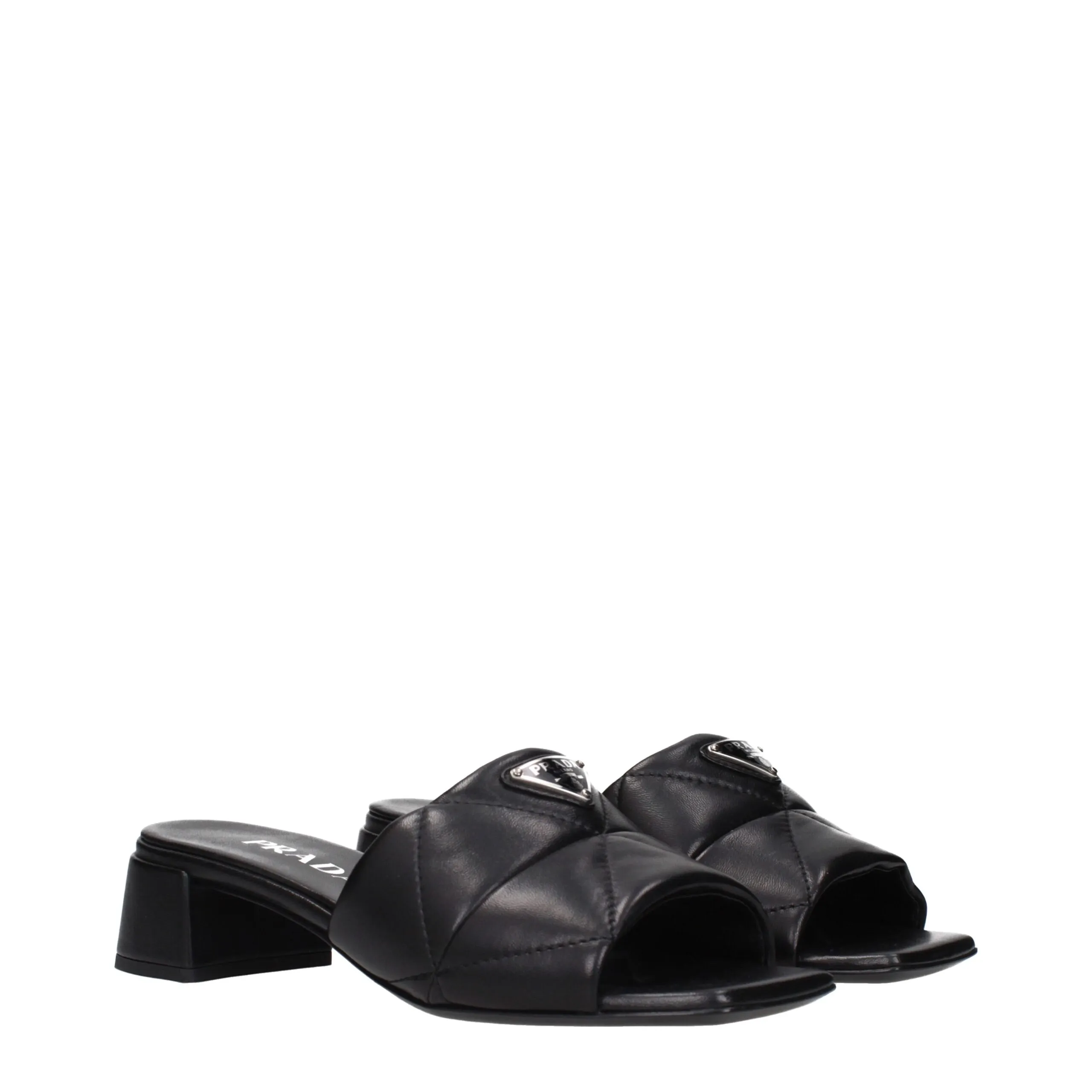 The product with MPN 1XX656038035F0002 and code F84279 leather in black is a sandals designed by Prada. It has features like front logo.