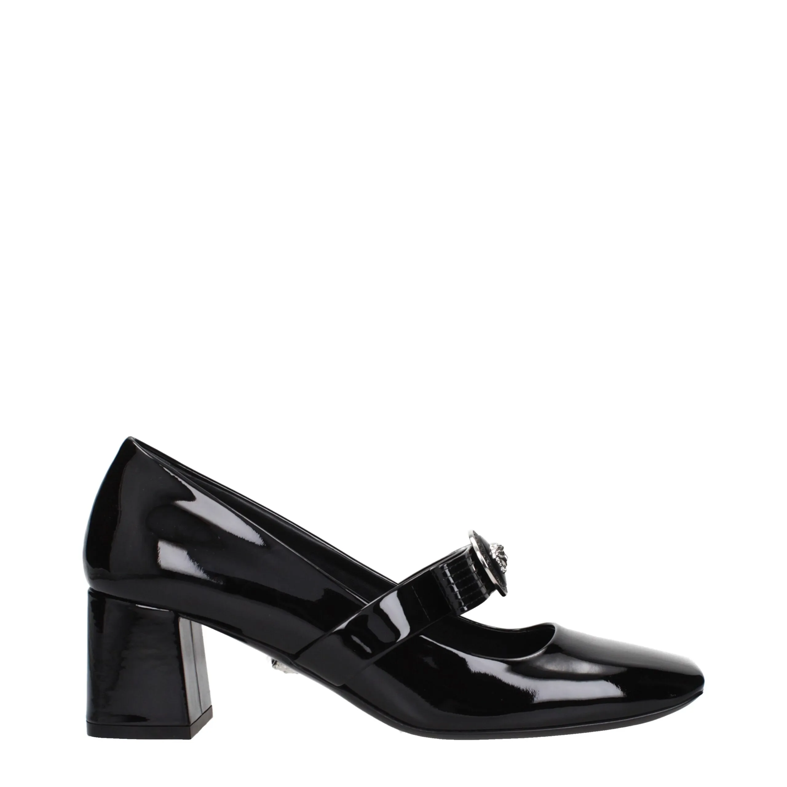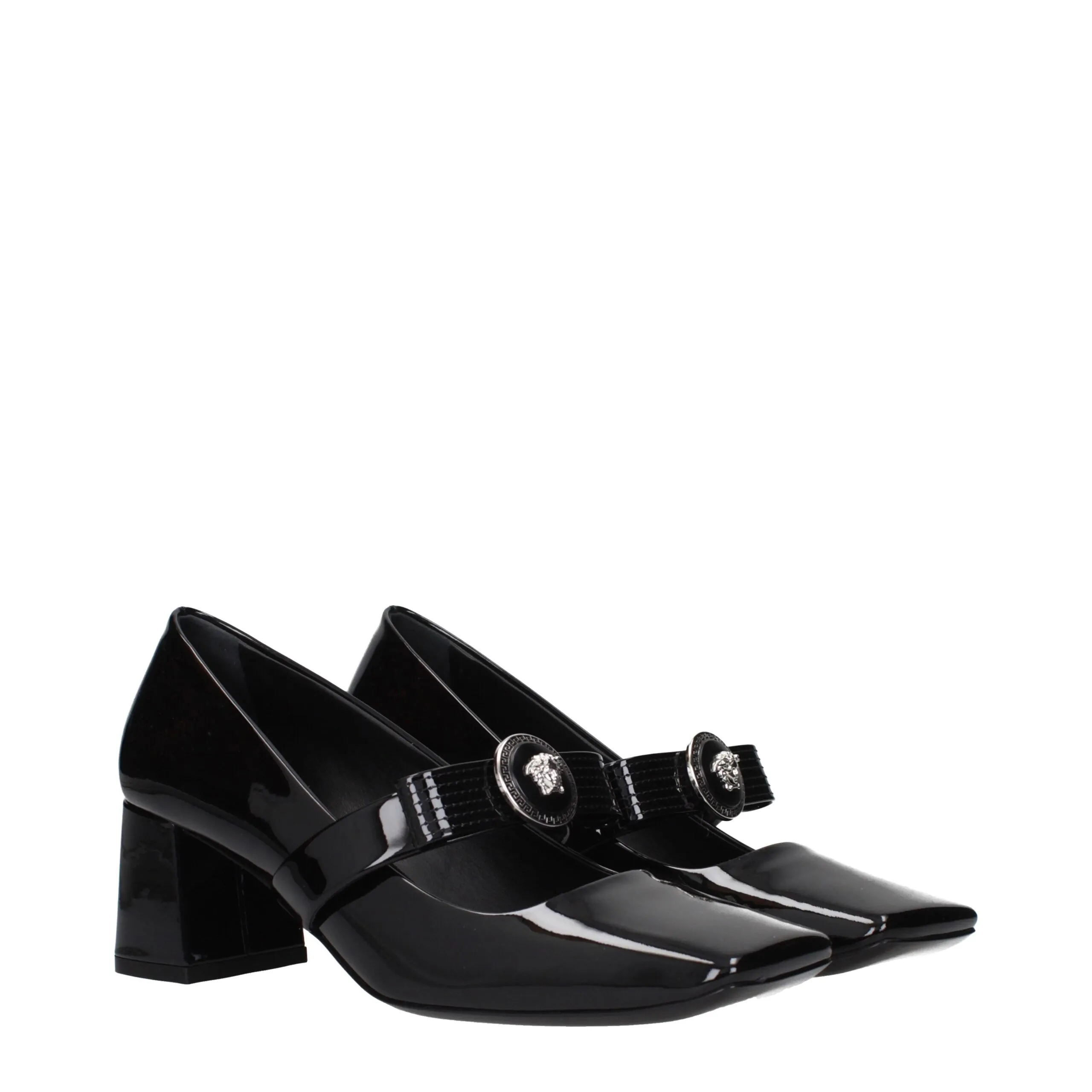The product with MPN 1016203D2VE1B00P and code F84898 patent leather in black is a pumps designed by Versace. It has features like front detail.
