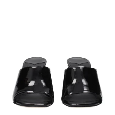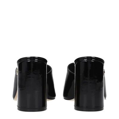 The product with MPN SKYLAHMULE85OPATBLACK and code F85106 patent leather in black is a sandals designed by Jimmy Choo. It has features like side logo.