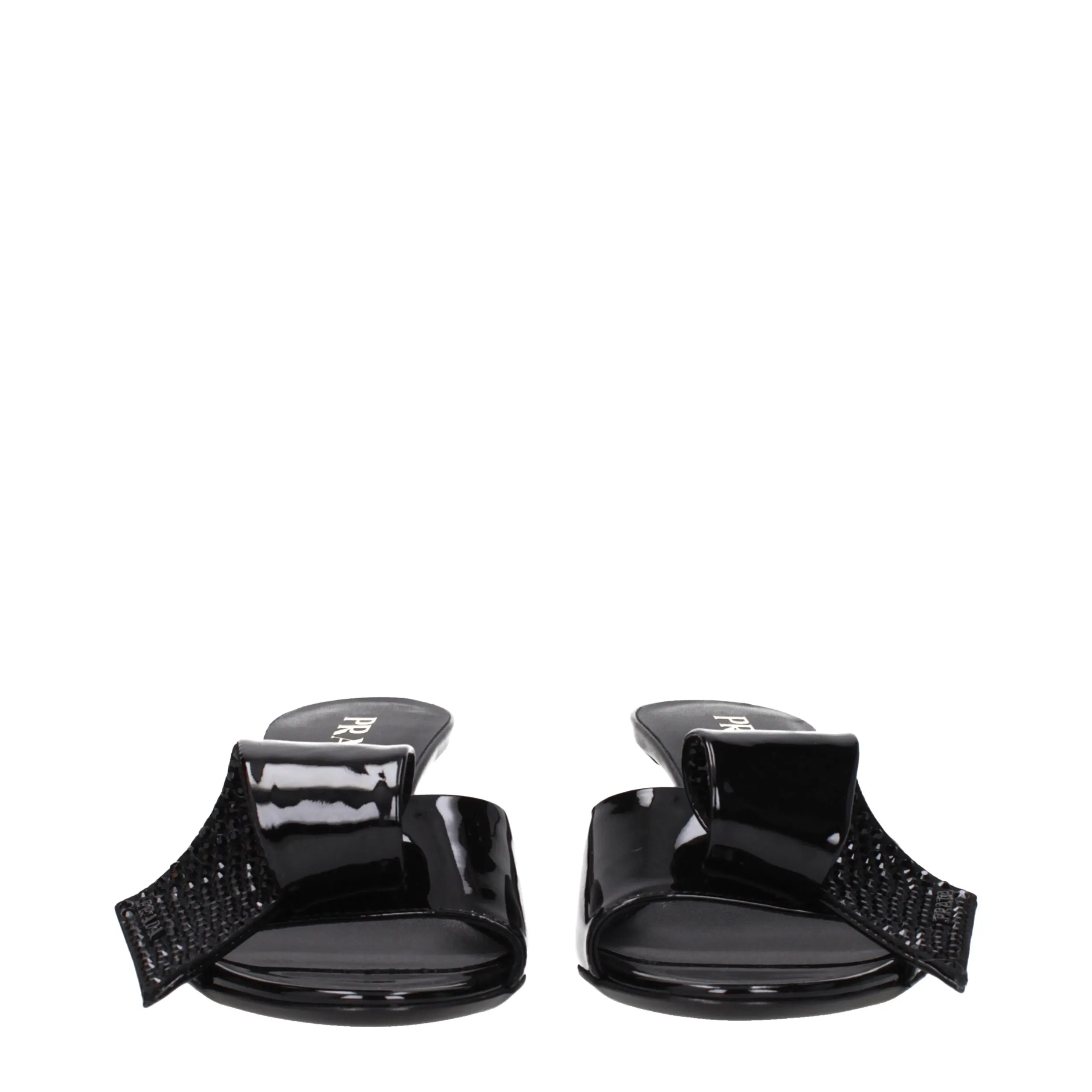The product with MPN 1XX6913LOC055F0002 and code F80994 patent leather in black is a sandals designed by Prada. It has features like front detail.