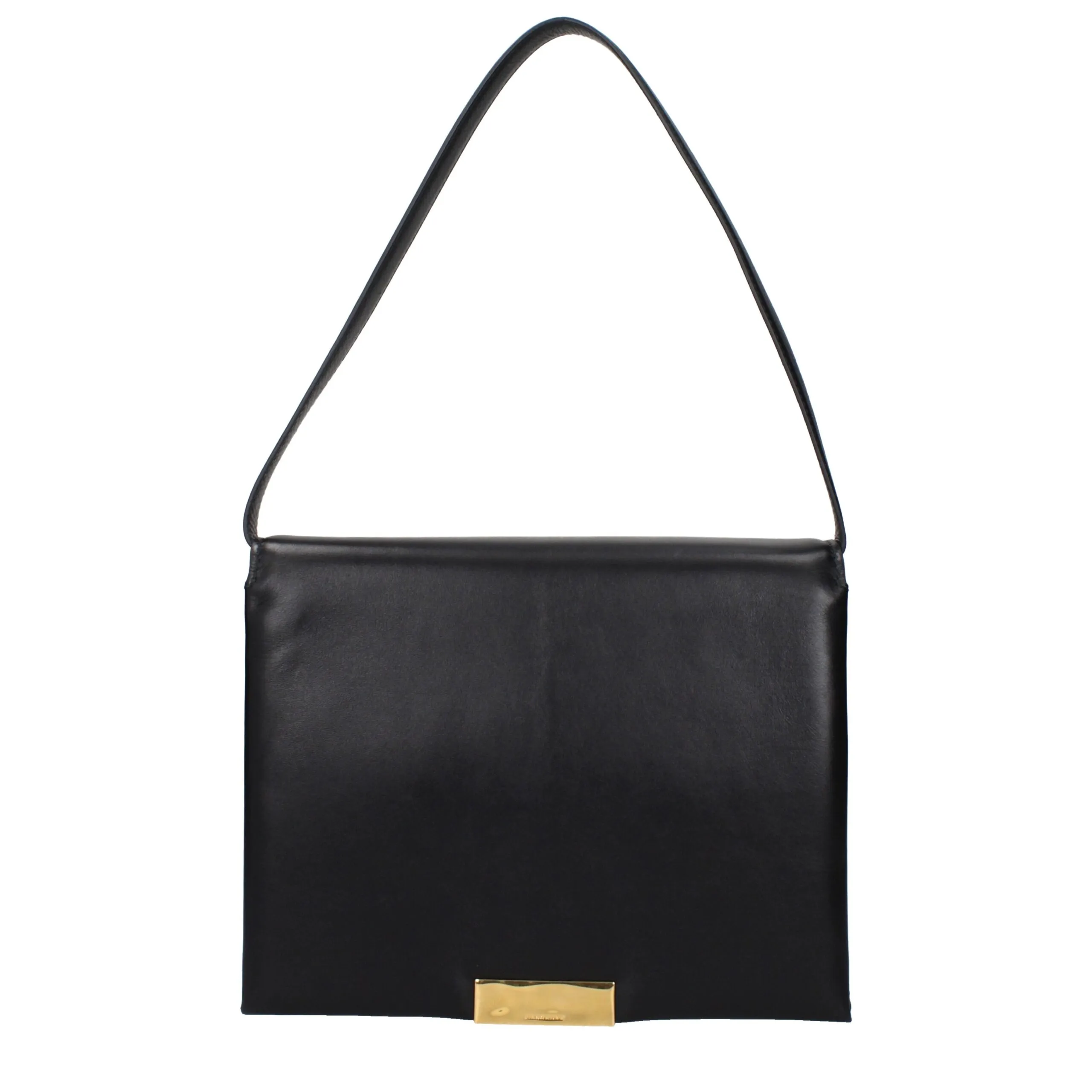 The product with MPN J08ZH0059P6569001 and code F84836 leather in black is a shoulder bags designed by Jil Sander. It has features like front logo, vintage effect, aged effect.