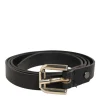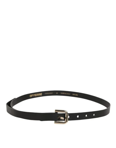 Black Leather Slim Gold Tone Buckle Waist Men Belt