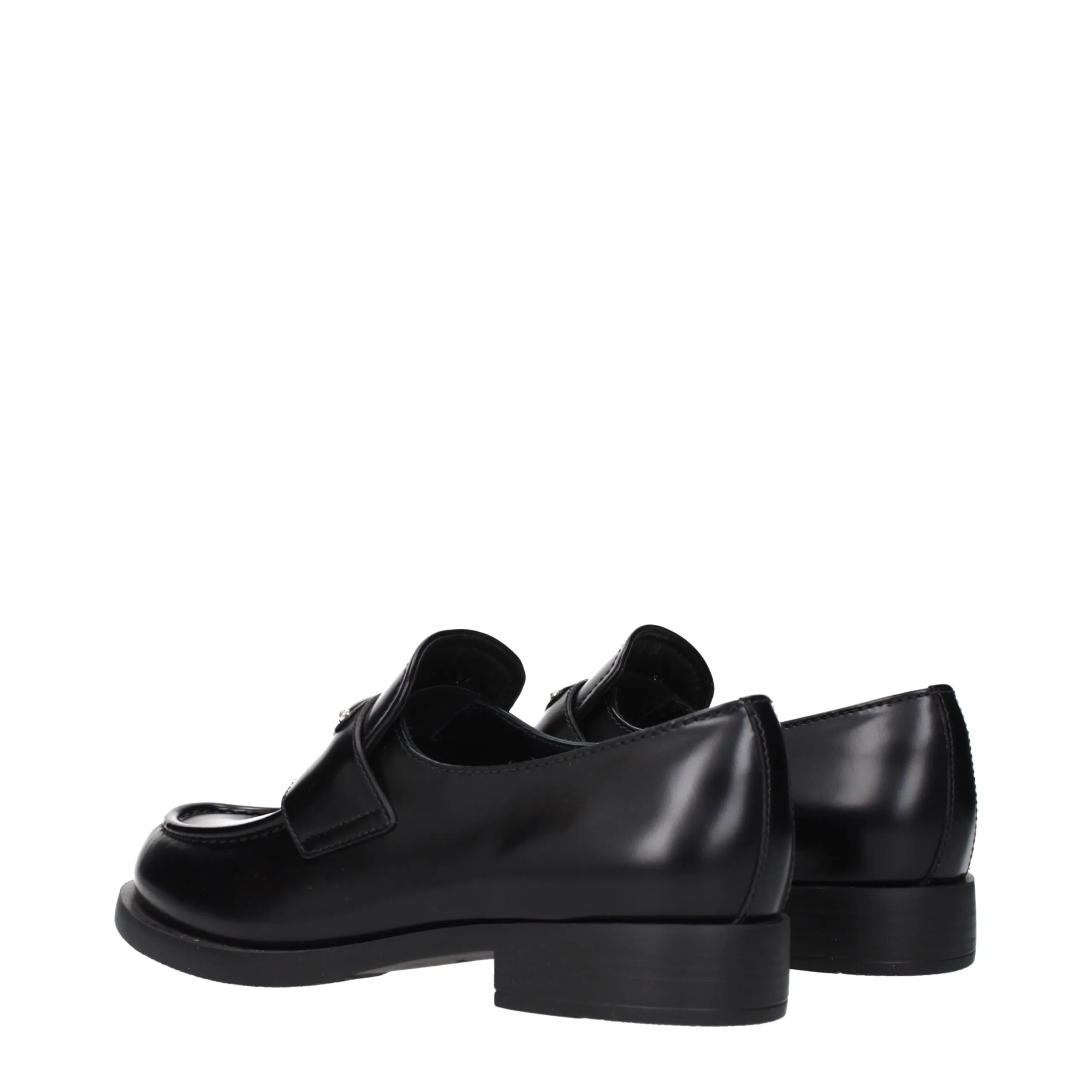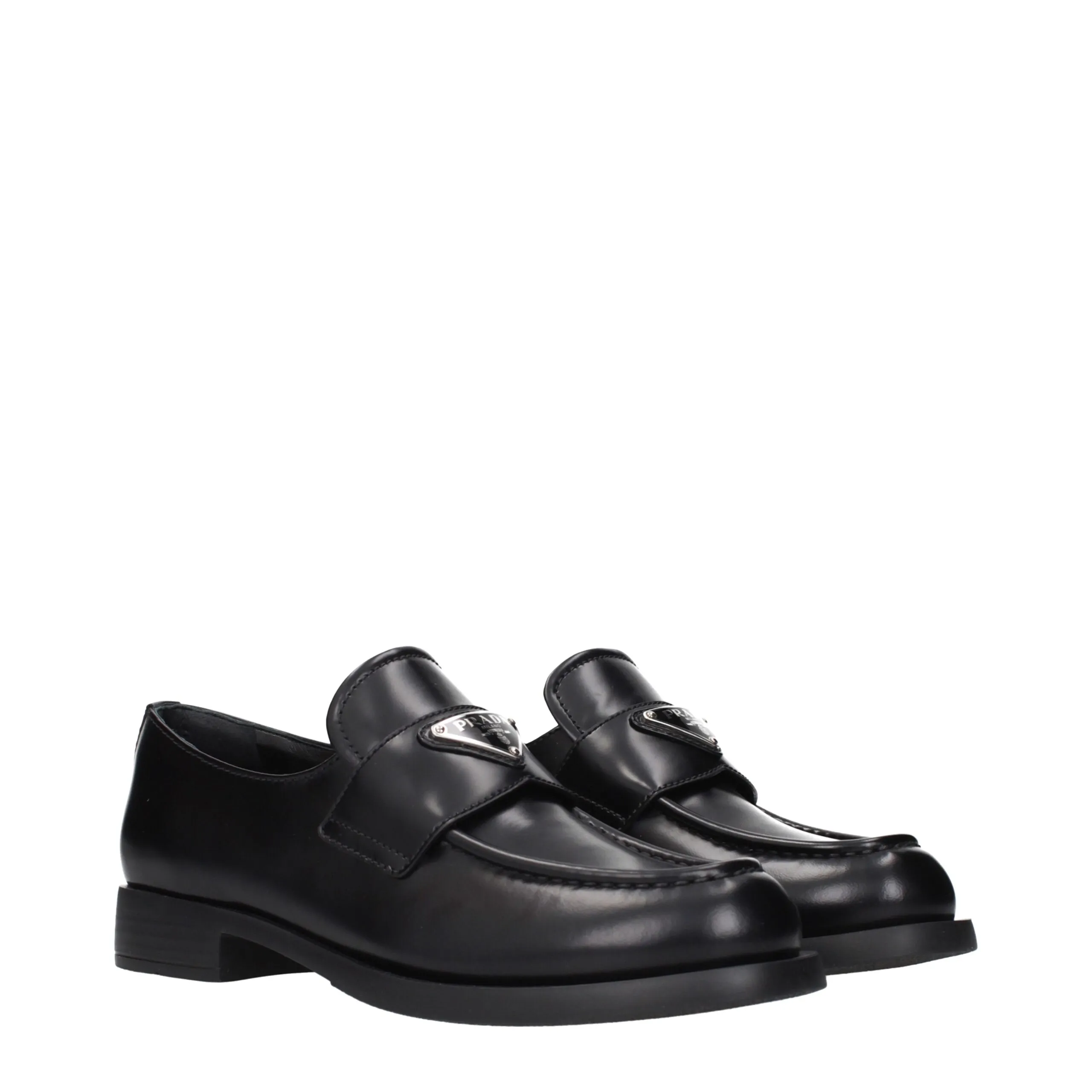 The product with MPN 1D329N055025F0002 and code F84289 leather in black is a loafers designed by Prada. It has features like front logo.