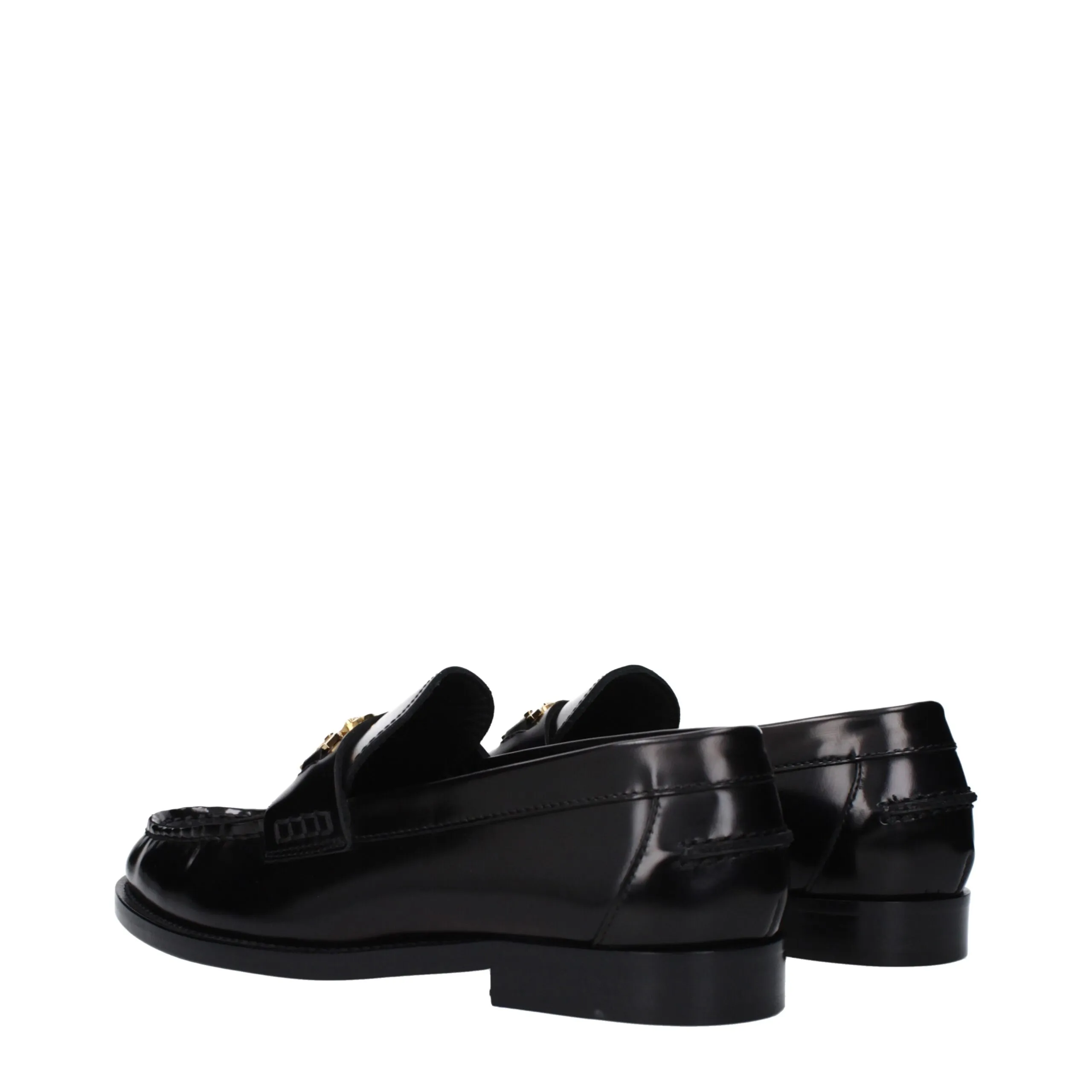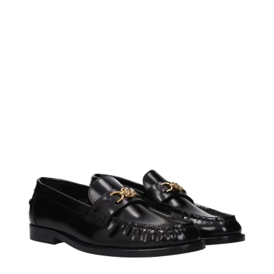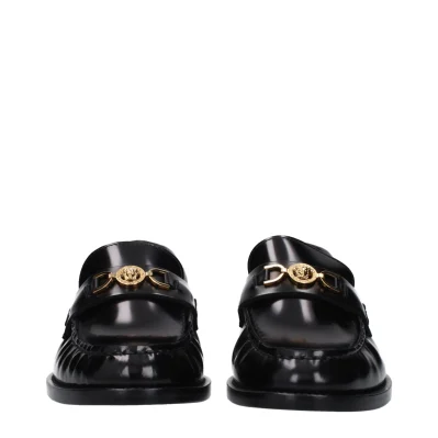 The product with MPN 10121231A087731B00V and code F82515 leather in black is a loafers designed by Versace. It has features like front detail, front logo.