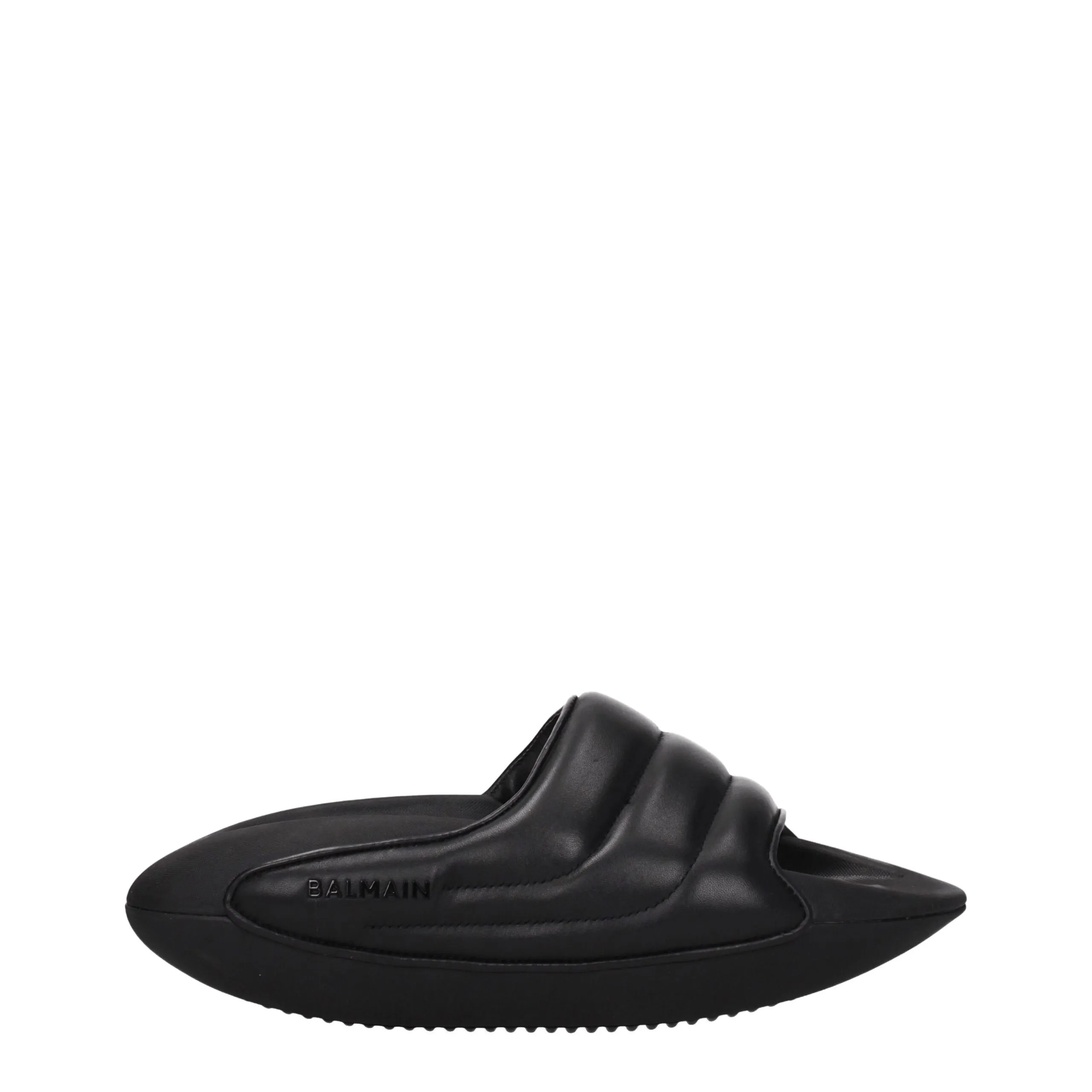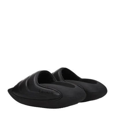 The product with MPN VL299LPQP0PA and code F77106 leather in black is a slippers and clogs designed by Balmain. It has features like side logo.