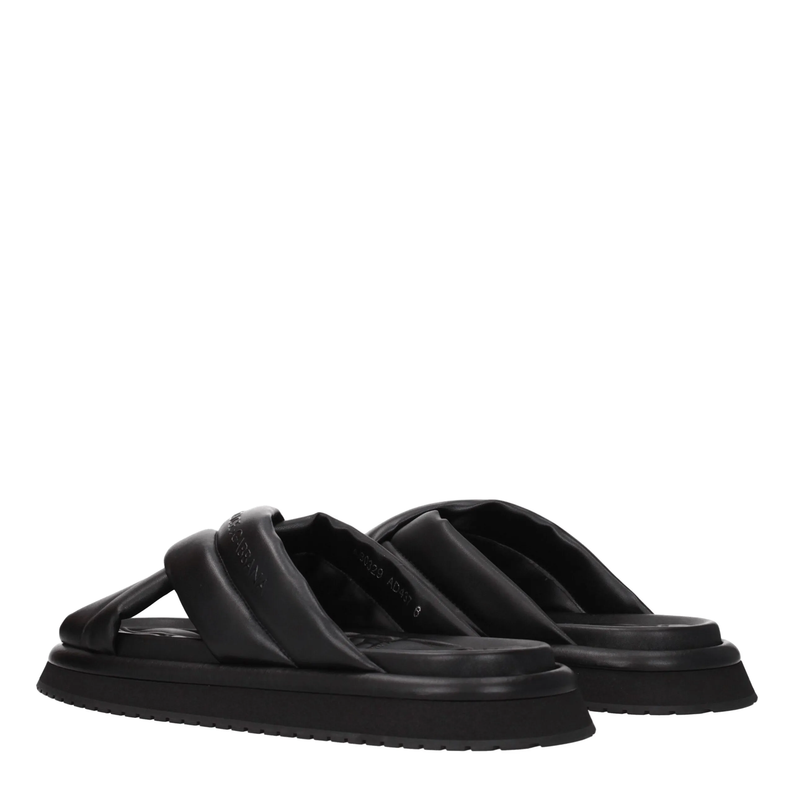 The product with MPN A80329AD43780999 and code F76153 leather in black is a slippers and clogs designed by Dolce&Gabbana. It has features like side logo.