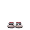 The product with MPN FFF144A06257001 and code F76130 leather in black is a slippers and clogs designed by Thom Browne. It has features like front detail.