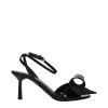 Black Leather Stiletto Heel Sandals