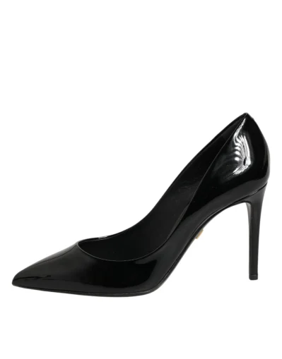 pumps are crafted from premium black leather, exuding timeless sophistication and Italian craftsmanship. Designed with a classic pointed toe and sleek stiletto heel, they enhance a refined silhouette perfect for any formal or evening occasion. A versatile and elegant addition to your luxury footwear collection.