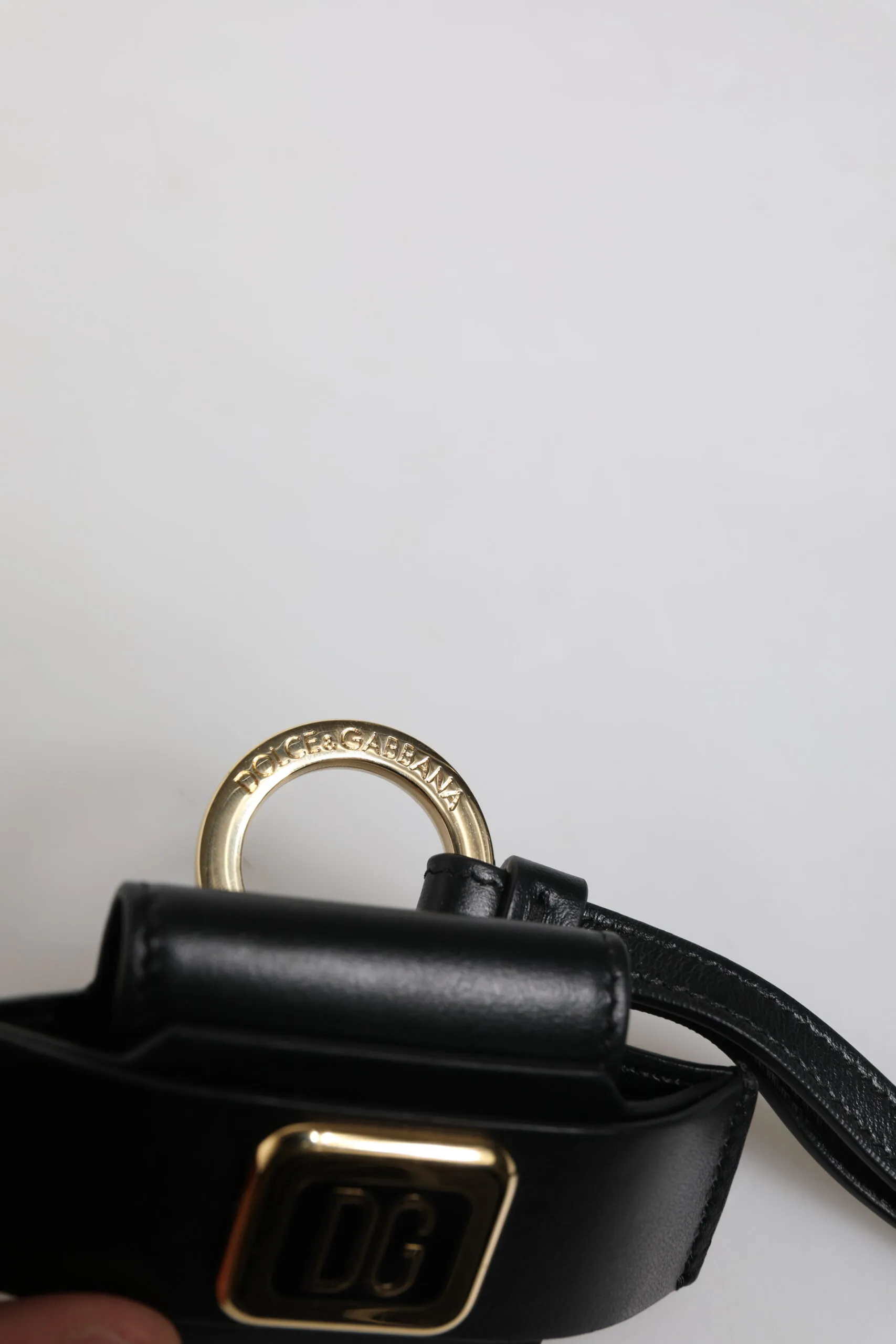 Black Leather Strap Gold Metal Logo Plaque Airpods Case