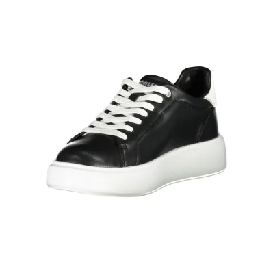 Elevate your sneaker game with the dazzling Blauer sports shoe, where functionality meets high fashion. This trendy black sneaker boasts striking contrasting white details and a burst of sparkle with its rhinestone embellishments. A removable insole provides customizable comfort while you stride in style. Each step is a statement with the iconic Blauer logo. Perfect for the fashion-forward individual ready to shine.