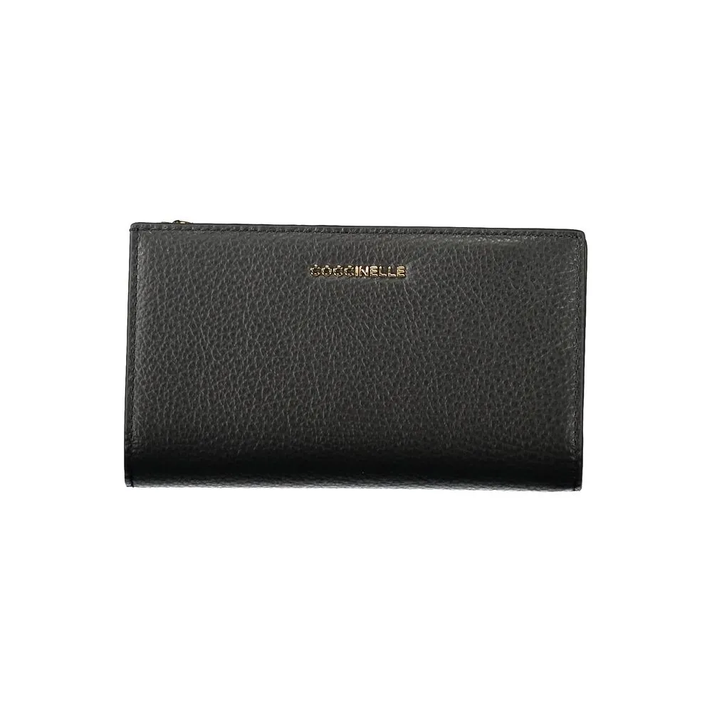 Experience the fusion of practicality and elegance with the Coccinelle Metallic Soft Wallet. This chic accessory is not just a wallet; it’s a statement of style with its sleek black leather and gleaming logo. Equipped with dual compartments, a secure coin purse, and ample space for your cards, it transitions effortlessly from day to night. Its sophisticated design features both zip and automatic closure, ensuring your essentials are always safe and accessible. Elevate your everyday with this undeniable staple of luxury.