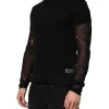 Gorgeous brand new, 100% Authentic Dolce & Gabbana t-shirt features a lightweight black linen mesh design with intentional tattered and distressed detailing. This long sleeve top blends edgy aesthetics with high-fashion craftsmanship, offering a semi-sheer look that’s perfect for bold styling. Made in Italy, it’s a standout piece for those who embrace avant-garde luxury.