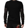 Black Linen Mesh Tattered Longsleeves T-shirt