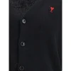 The Ami De Coeur Cardigan by Ami Paris combines comfort with a distinctive identity. It features a front button closure, ribbed hem and cuffs, and a jacquard logo on the front for an iconic and recognizable touch. A modern essential.
