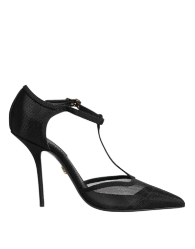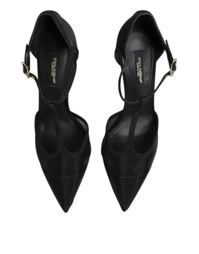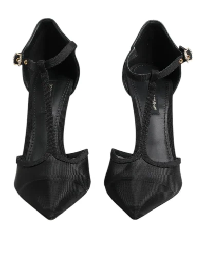 Gorgeous brand new, 100% Authentic DOLCE & GABBANA shoes feature a black mesh upper, a T-strap design, a high stiletto heel, and an almond toe.