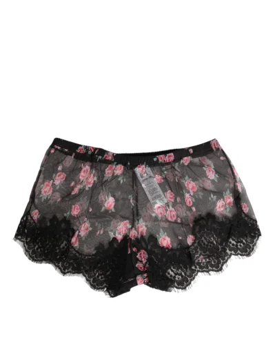 Gorgeous brand new, 100% Authentic Dolce & Gabbana shorts, crafted in sheer black mesh with an elegant pink floral print and intricate black lace trim. Designed with a comfortable elastic waistband, these shorts exude luxury and femininity. Perfect for intimate wear or as a stylish lounge piece.