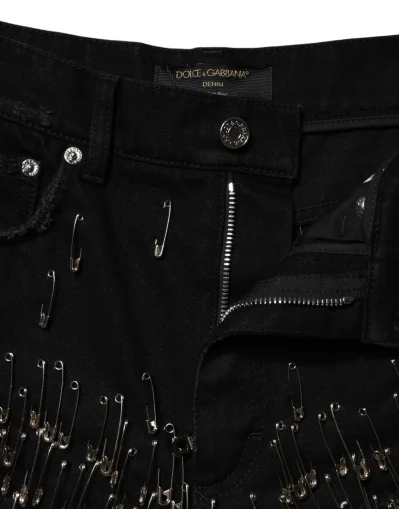Black Pins Cotton Denim Hot Pants Shorts