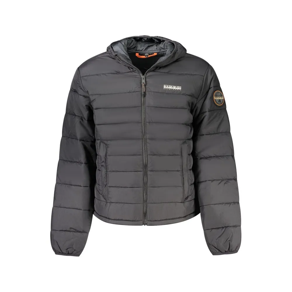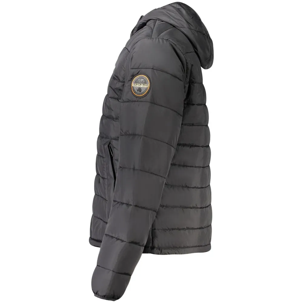 Experience the epitome of urban sophistication with Napapijri’s sleek black jacket, crafted to perfection from high-quality polyamide. This regular-fit masterpiece boasts a protective hood and savvy compartmentalization with two external pockets, complemented by an additional internal pocket for your essentials. The distinct Napapijri logo accents the design, making a bold statement, while eco-conscious trendsetters will appreciate the use of recycled materials. Elevate your wardrobe with this blend of functional elegance and environmental awareness.